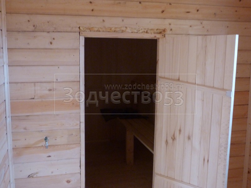 • В парной потолок обшит осиновой вагонкой, cтены вагонкой класса «А» с проложкой из фольги.