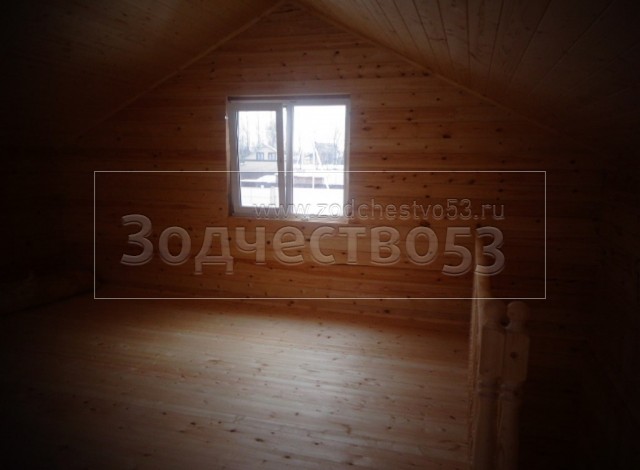 Баня общими размерами 6,0х9,0. 1 этаж - 6,0х6,0 из профилированного бруса 200х150, 2 этаж - полутороэтажный с брусовыми фронтонами из профилированного бруса 150х150 под двухскатной крышей и веранда 3,0х6,0 под отдельной односкатный крышей. Построен в Московской области, Дмитровский р-н. На сайте можно посмотреть проект: баня №7 с изменениями.