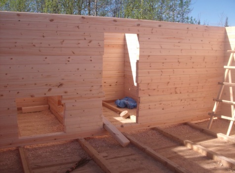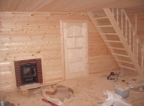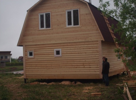 Стены: профилированный брус 150×150 (овал) 16 венцов, высотой 2.20 м. сборка стен и перегородок первого этажа на деревянные нагеля в тёплый угол (тёплый угол сделан вподарок)