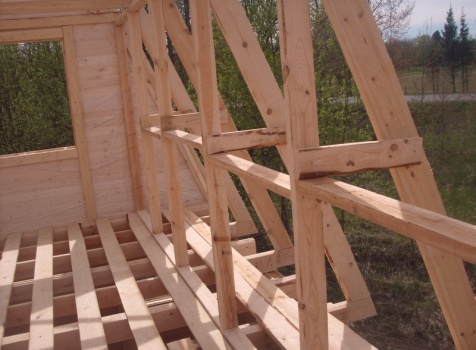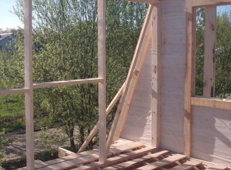 Второй этаж размерами 4.5×9.5 каркасно — щитовой, обшивается вагонкой класса «В» 16 мм с утеплением в 100 мм с проложкой парогидроизоляции.