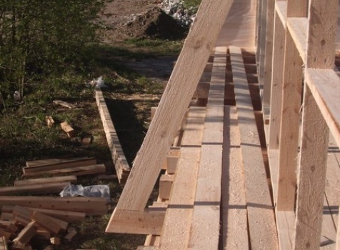 Стропила: 40×150 через 1 метр, межэтажные перекрытия 40×150 через 50 см, выгородка комнат 40×100.