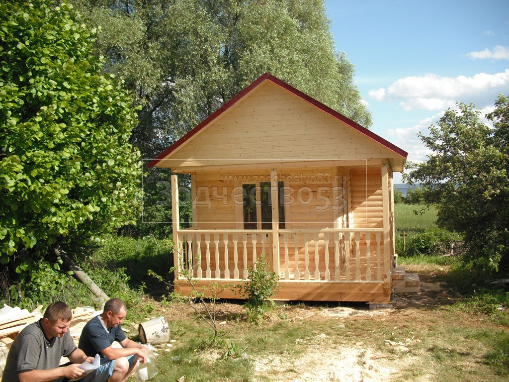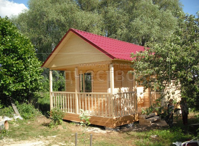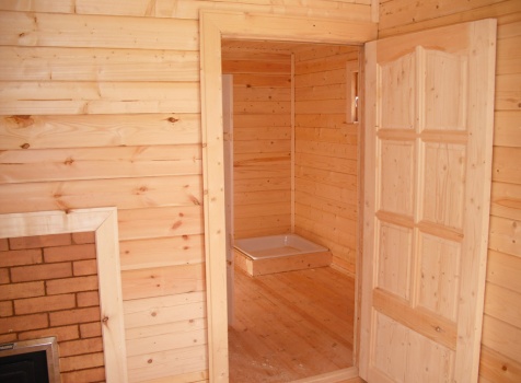 Баня из профилированного бруса 100×150 по проекту «Вербена», размером 7×4 м. Построена: Новгородская область, Валдайский район, д. Красилово.
