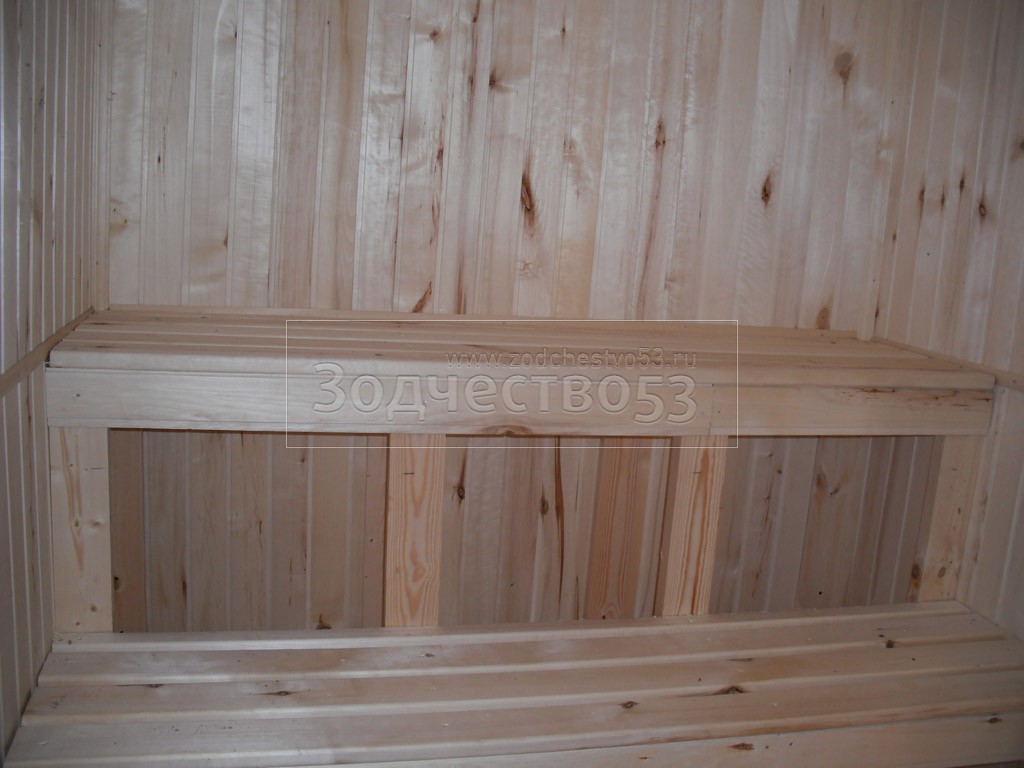 - Установлены двухярусные полки, печь «Ермак 16» со всеми комплектующими, с выводом тубы через крышу.