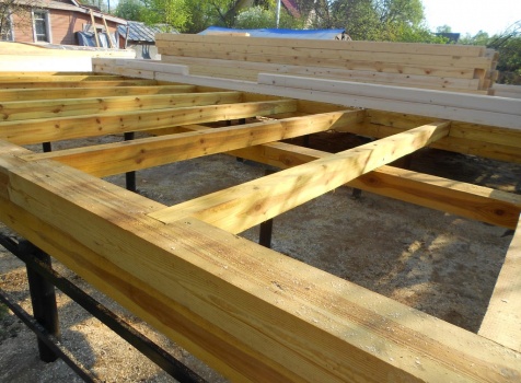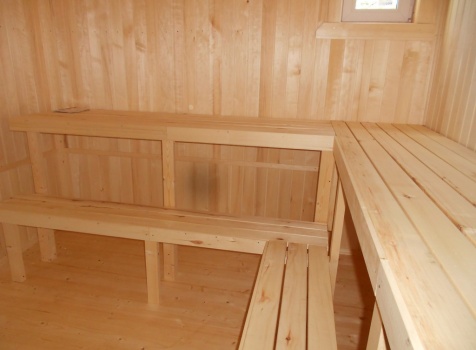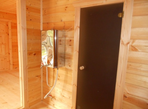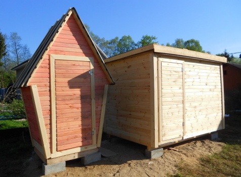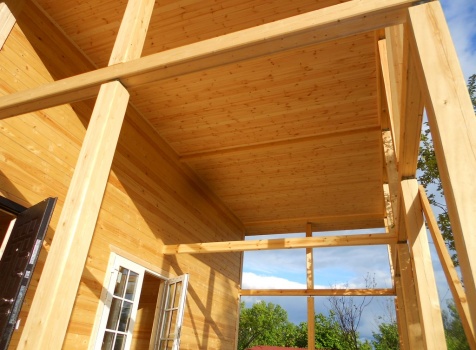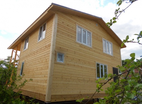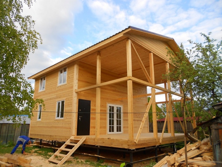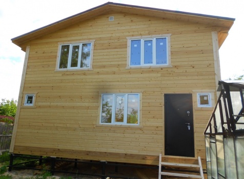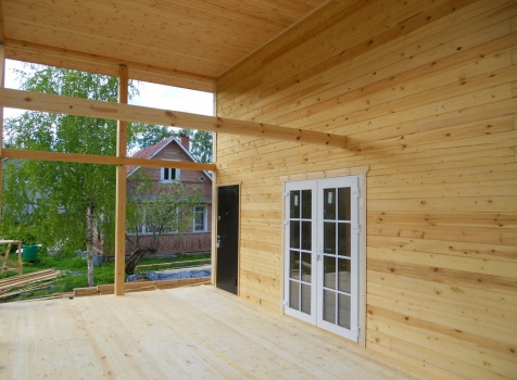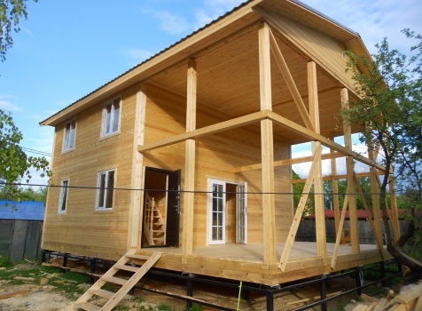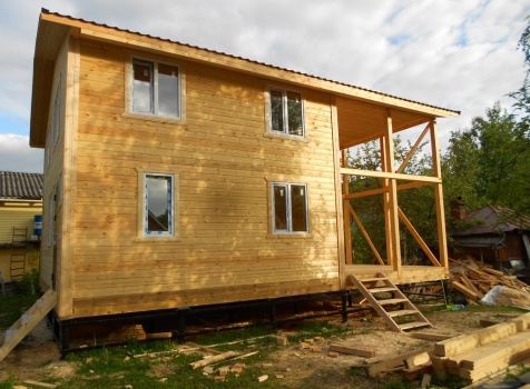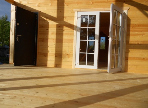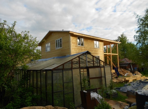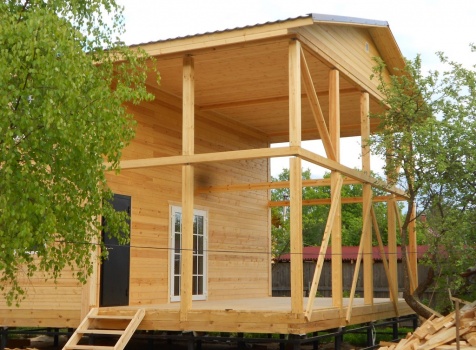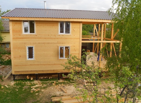 Баня общими размерами 8×10 (6×8 из профилированного бруса 150×150 и открытая терраса 4×8) построена в Ленинградской области, Всеволожский р-н, СНТ Скорая помощь.