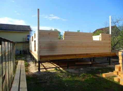 стены профилированный брус 150×150 (прямой), сборка на деревянные нагеля