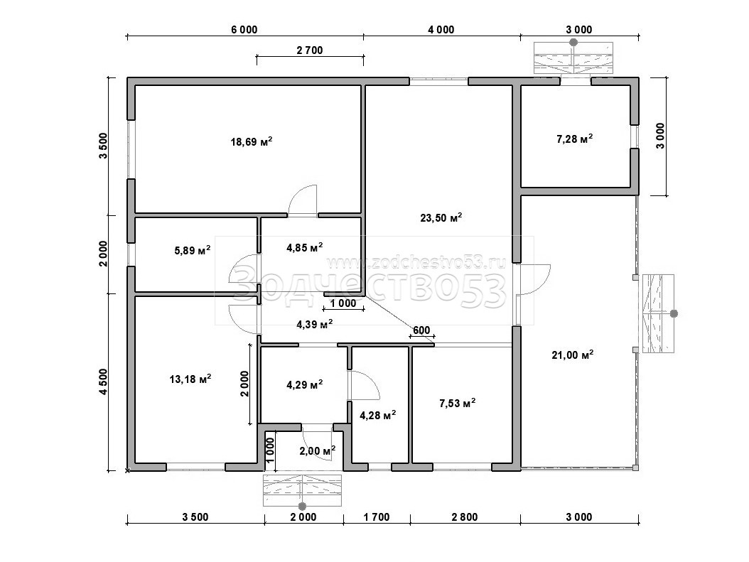 Окна: 1,0х1,2 м., 0,6х1,2 м., 0,6х0,6 м., 1,5х1,2 м. (по проекту)