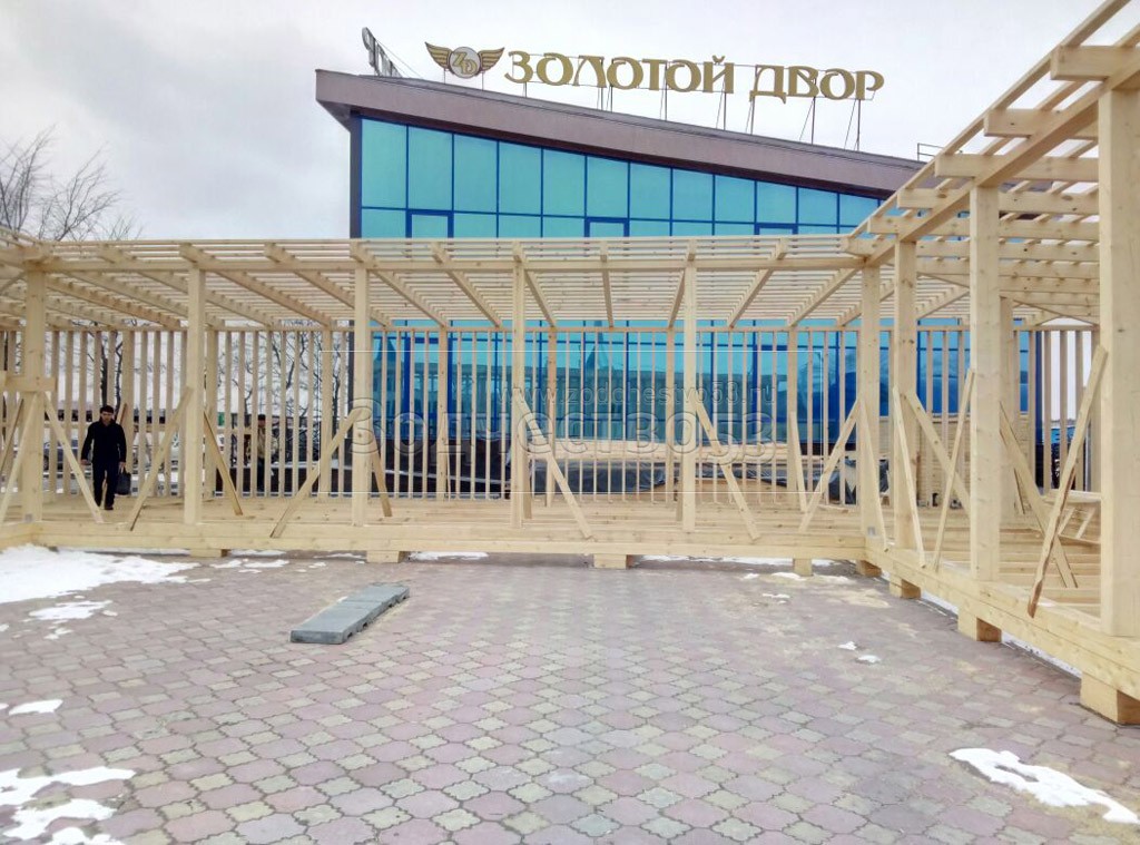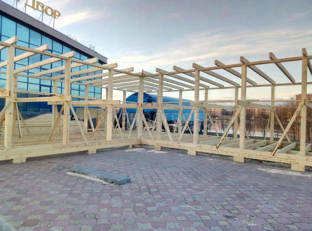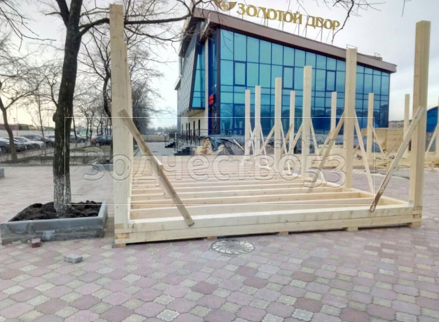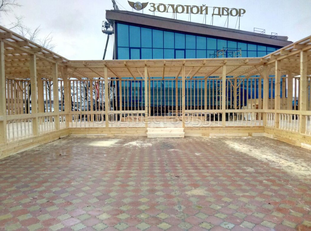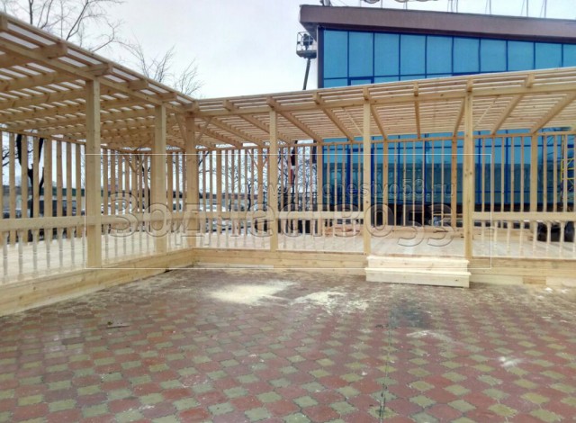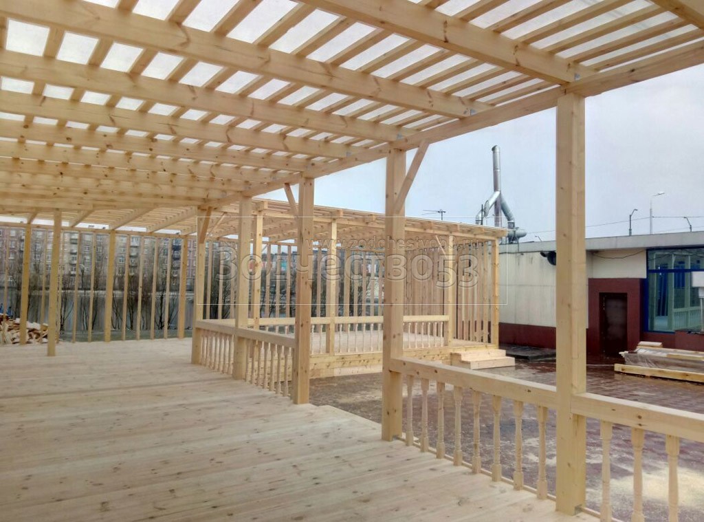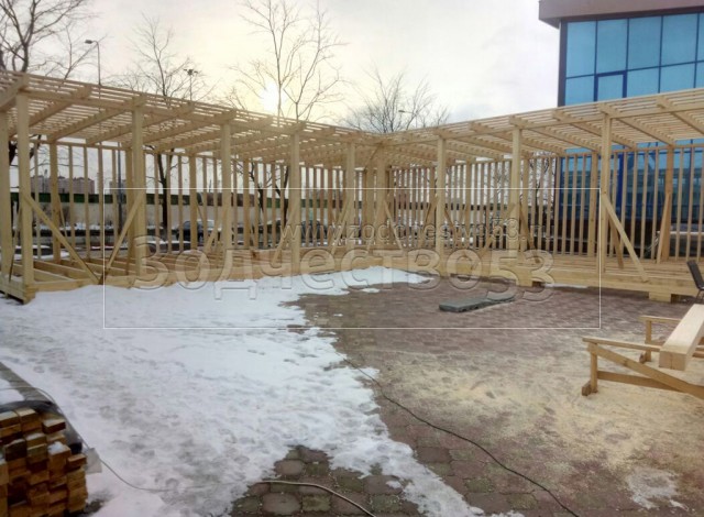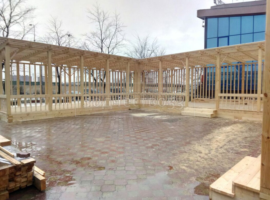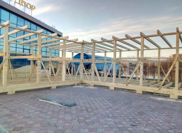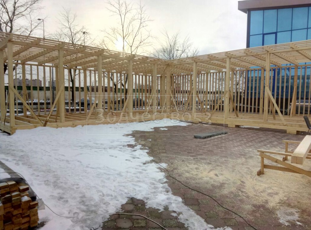 Беседка каркасно-щитовая 21,4х14,4 м. (буквой П) под односкатной крышей.