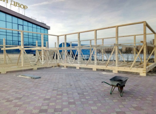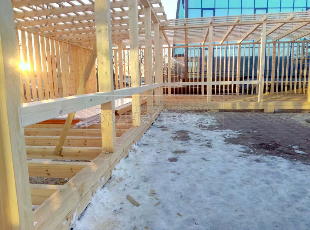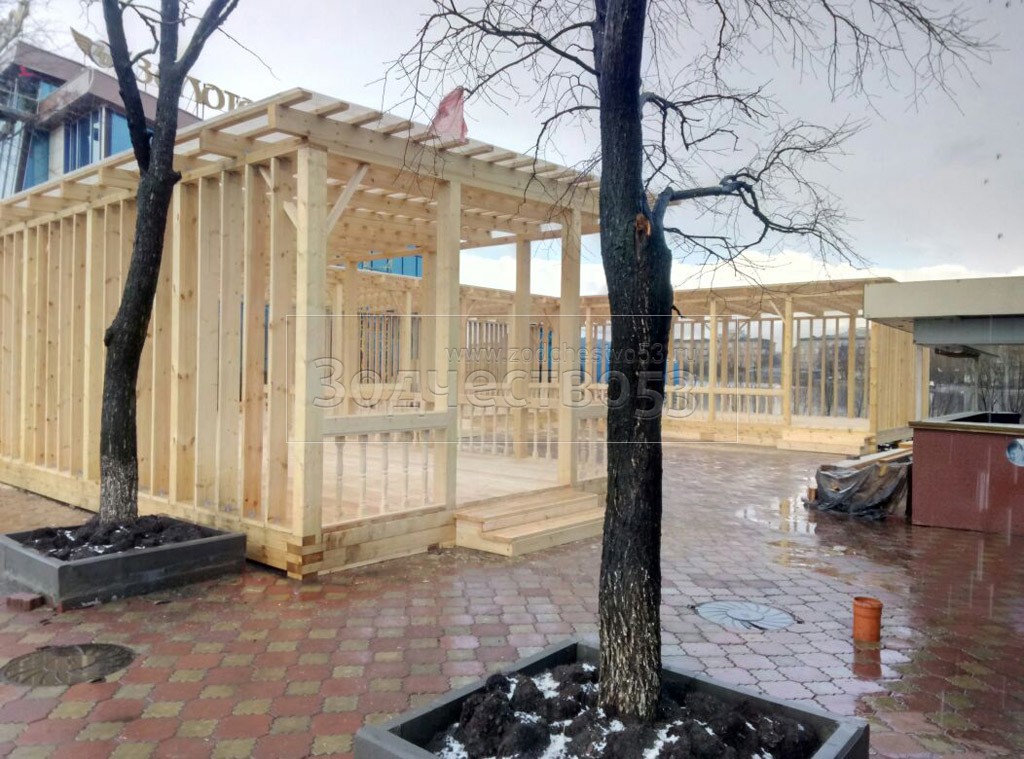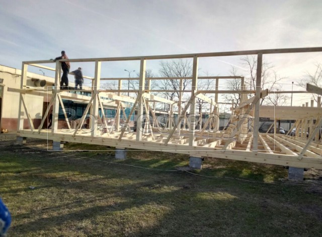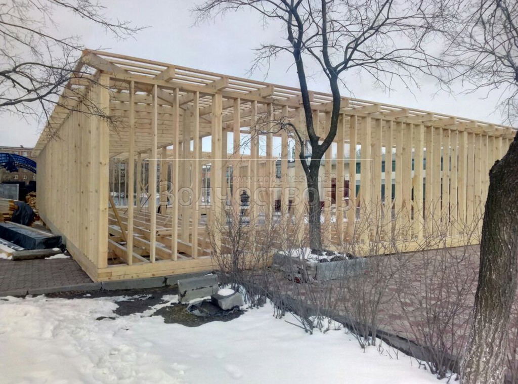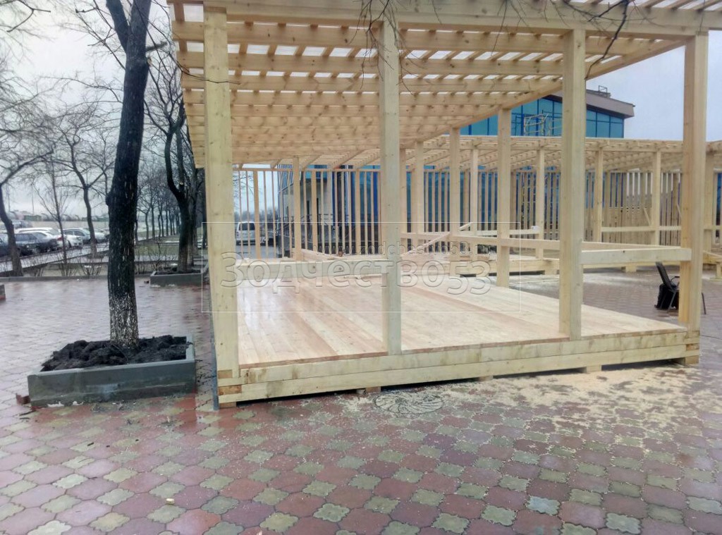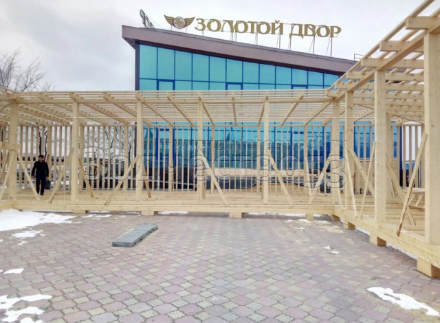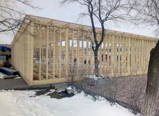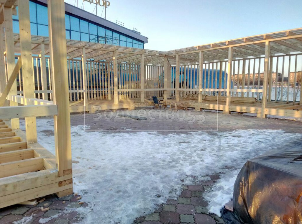 Беседка каркасно-щитовая 21,4х14,4 м. (буквой П) под односкатной крышей.