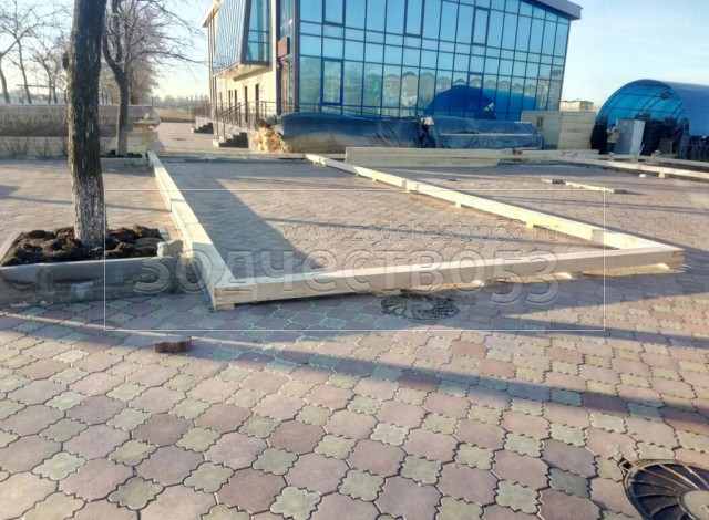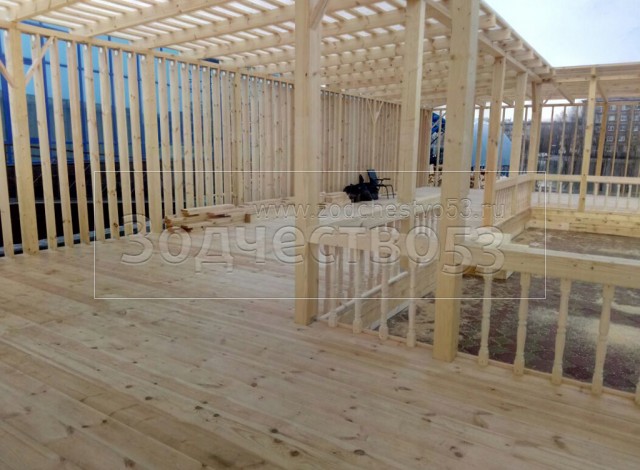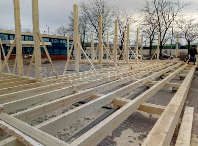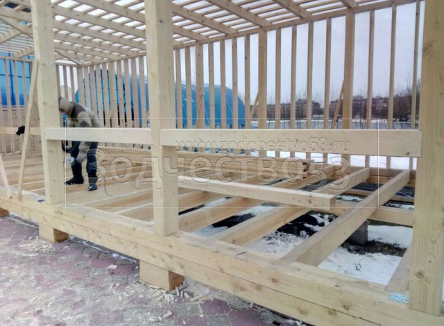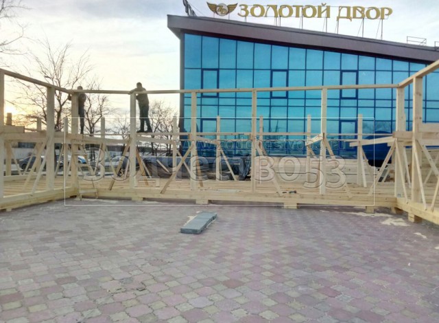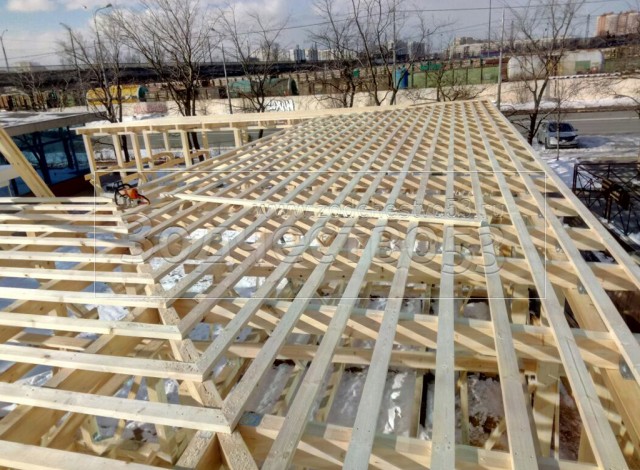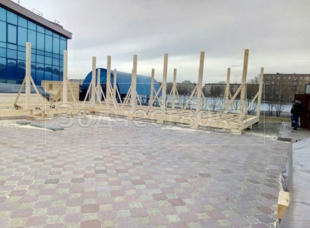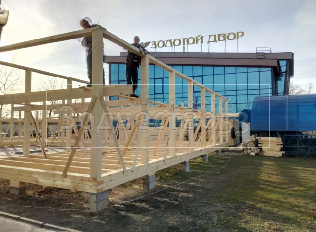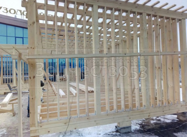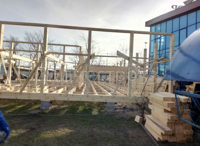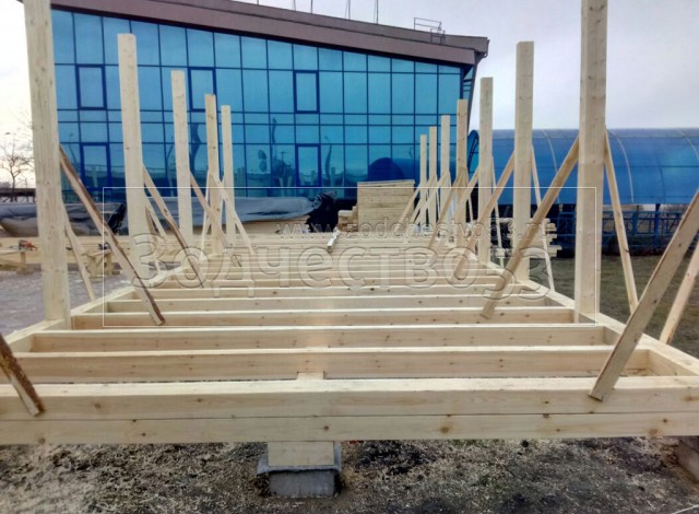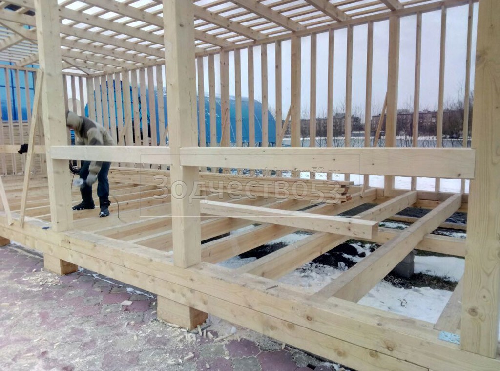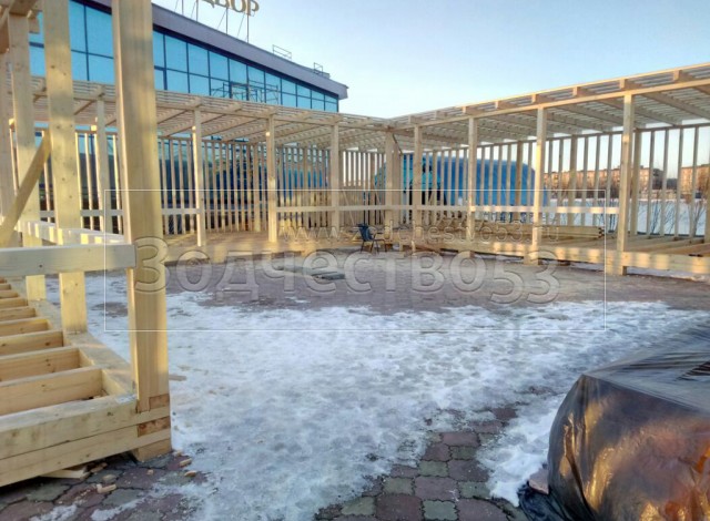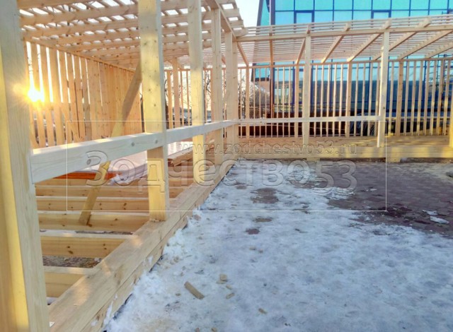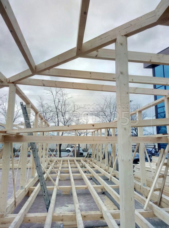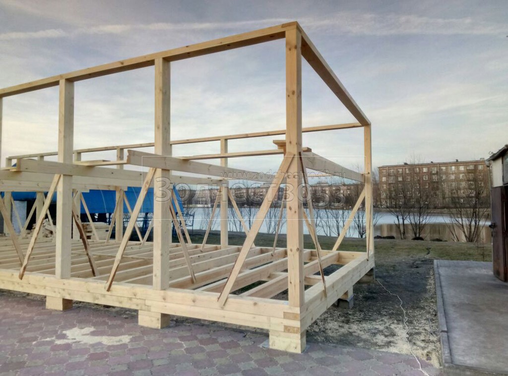 Беседка каркасно-щитовая 21,4х14,4 м. (буквой П) под односкатной крышей.