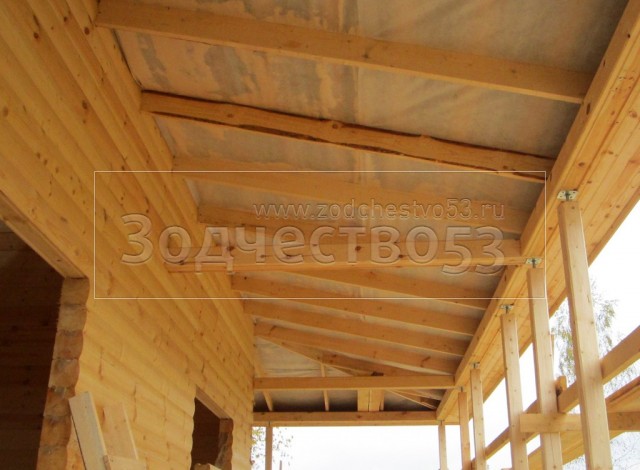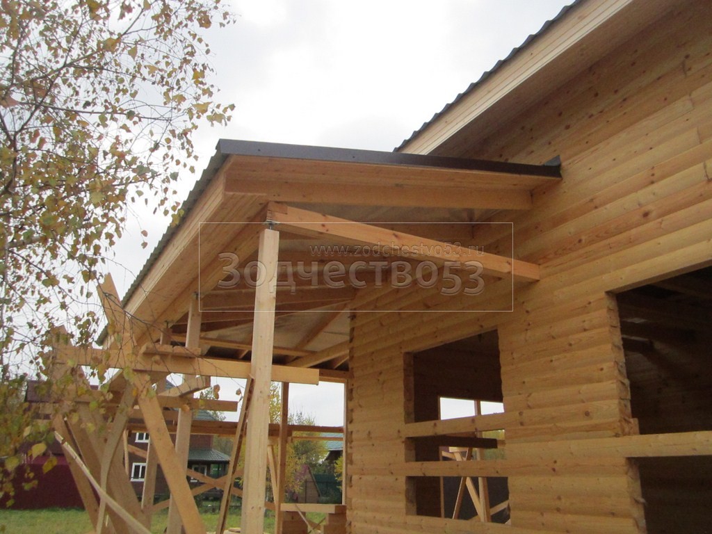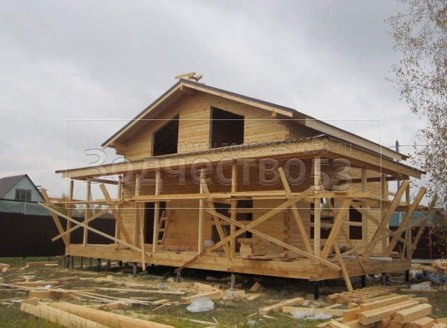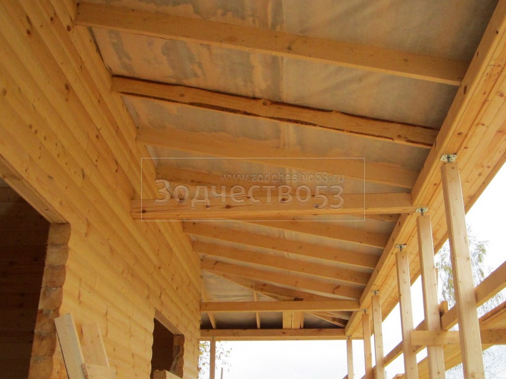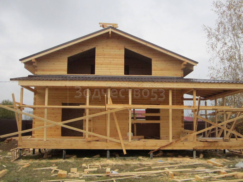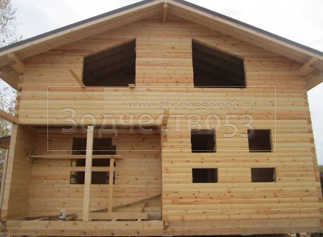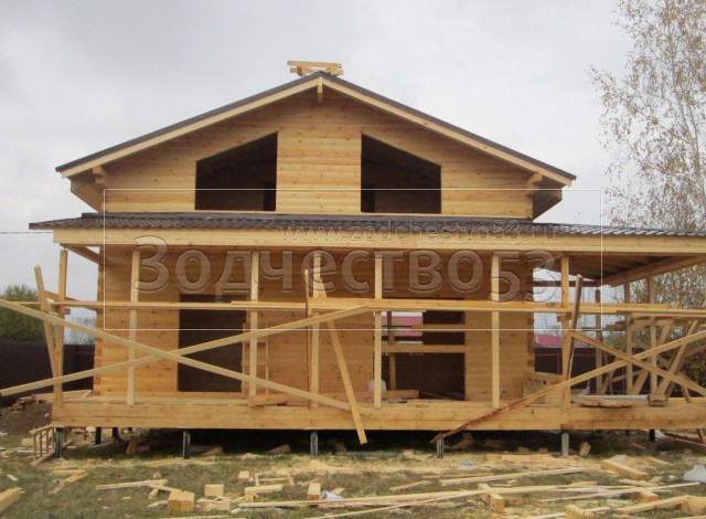 - Фронтоны из профилированного бруса 150×150, высотой 3.40м.