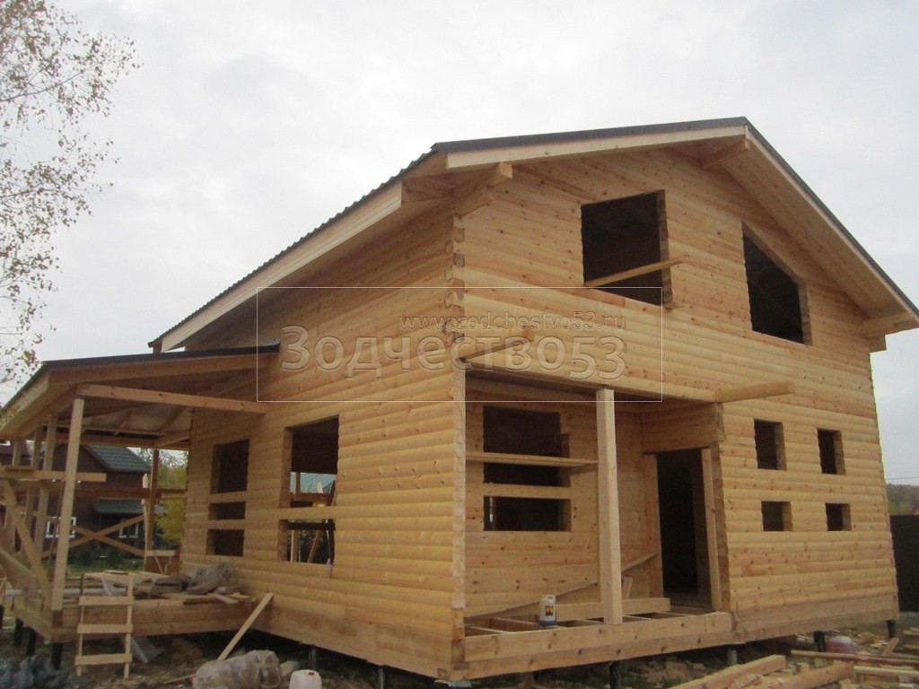- Второй этаж полуторный 8.0×8.5 из профилированного бруса 150×150, 11 венцов высотой