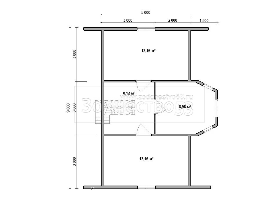 • С перилами, с точёными балясинами и стартовыми столбами. Одномаршевая и двухмаршевая (по проекту)