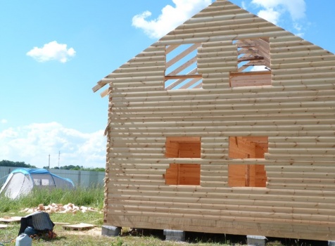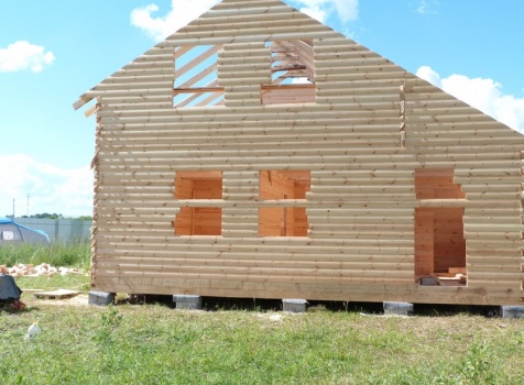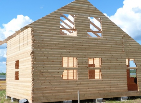 Фронтоны из профилированного бруса 100×150, высотой 3.0 метра сборка на гвозди в тёплый угол с проложкой льнополотна.