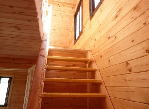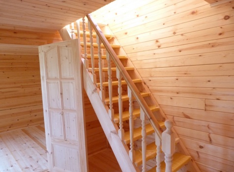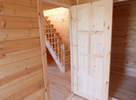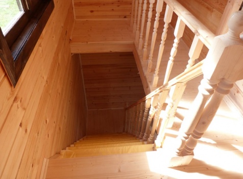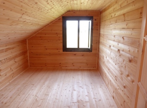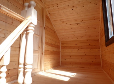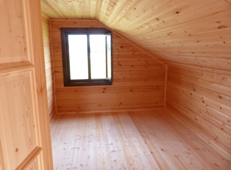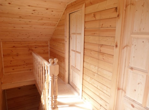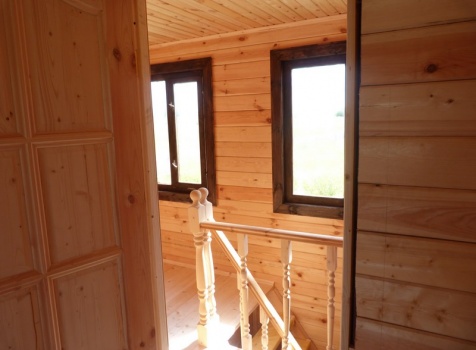 Второй этаж — полуторный, размерами 6.0×6.0 из профилированного бруса 100×150, 8 венцов, высотой 1.10 м., с выгородкой комнаты по высоте 2.30 м, сборка на гвозди в тёплый угол с проложкой льнополотна.