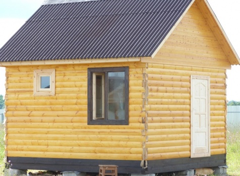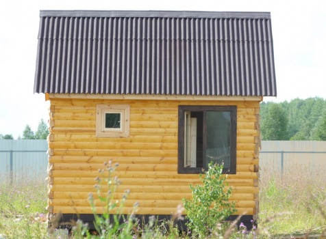 Одноэтажная баня из профилированного бруса 100×150 размерами 4.0×4.0 под двухскатной крышей.