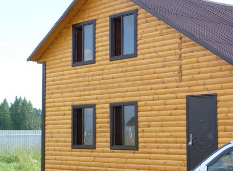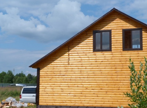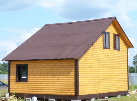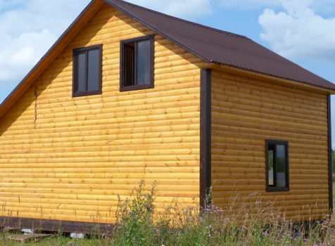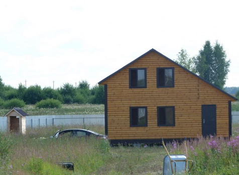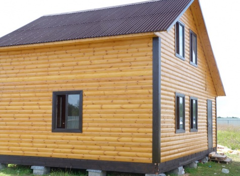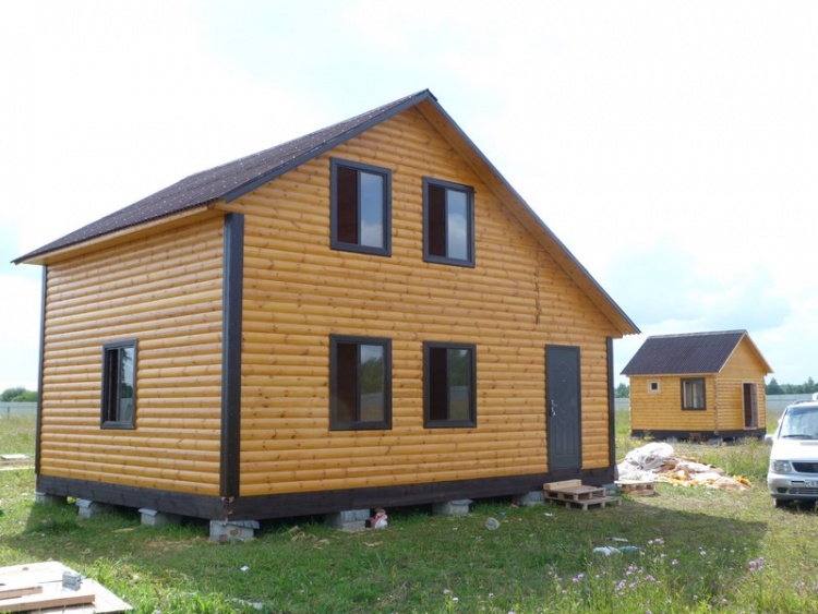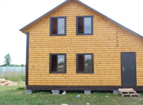 Дом из профилированного бруса 100×150 полутороэтажный под двухскатной крышей .