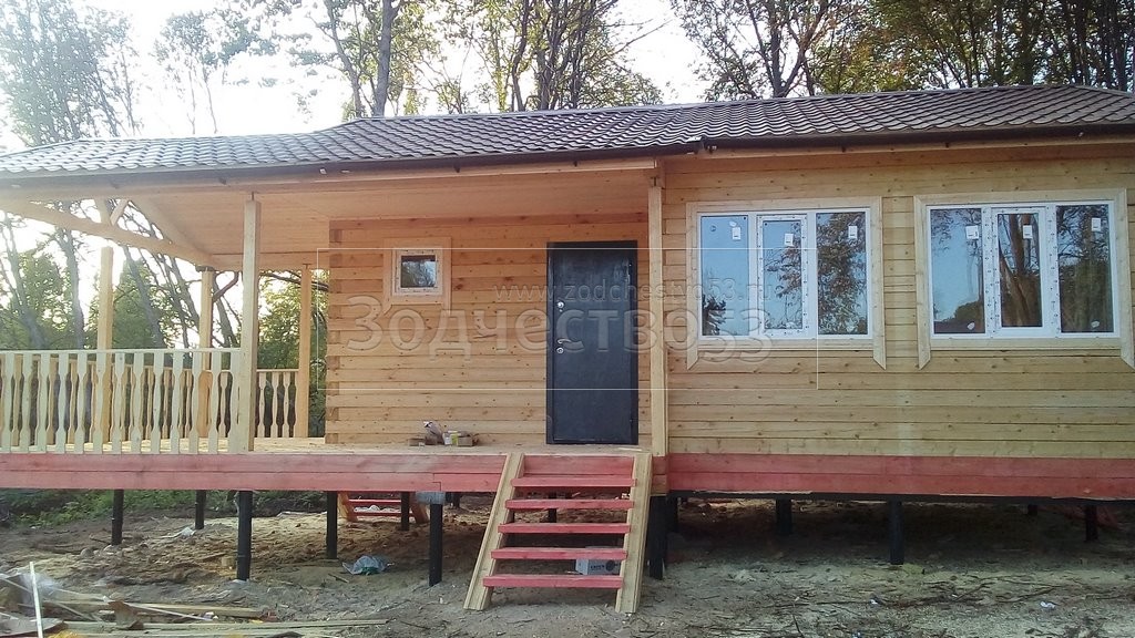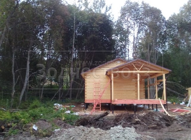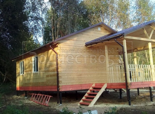 Дом общими размерами 10.60*7.50 (7.8*5.0 и 1.5*4.2 буквой Г из профилированного бруса 150*150 и открытая терраса 2.8*5.0 и 3.6*2.5 буквой Г). Объект построен: Ленинградская обл., Выборгский р-он, п. Медянка, Щербаковский проезд, уч.5.