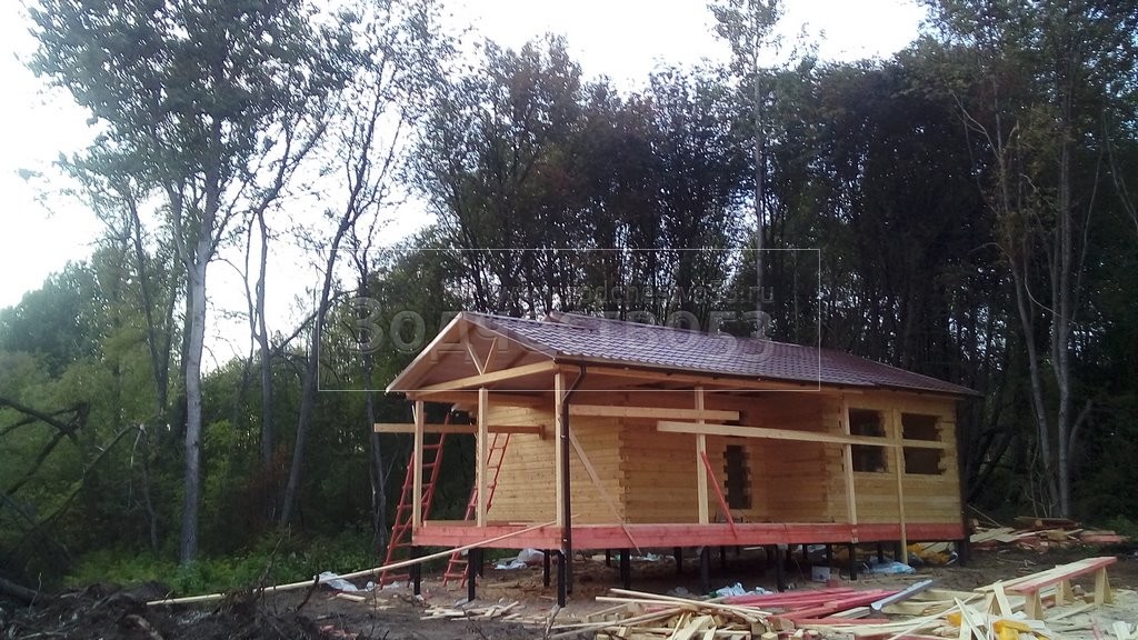 - Обработка огнебиозащитой :черновой пол,лаги ,обвязка.