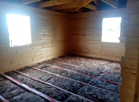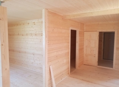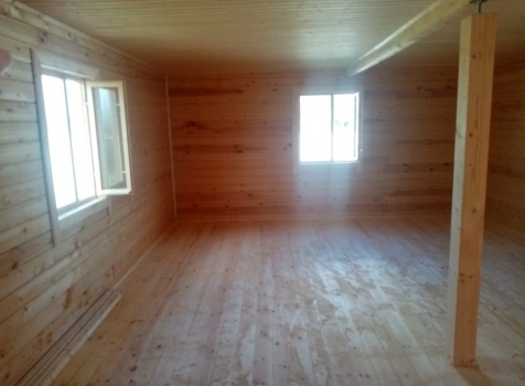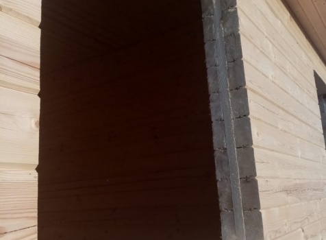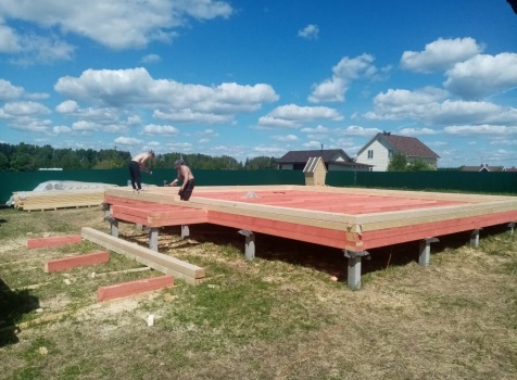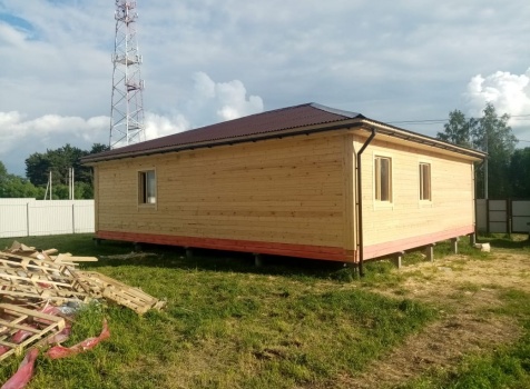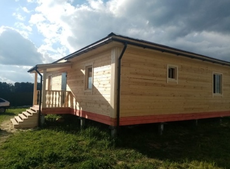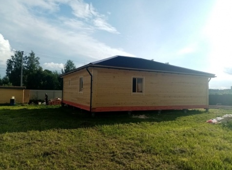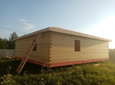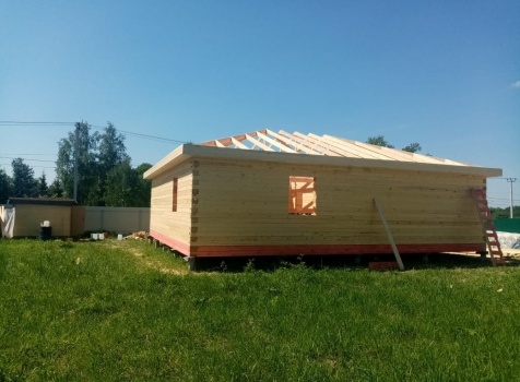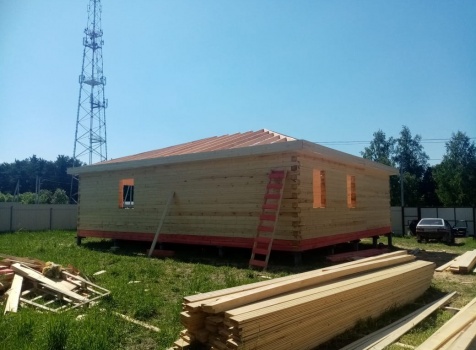 Постройка одноэтажного дома общими размерами 11.50х11.50 (10.0х11.50 из профилированного бруса 140х190 камерной сушки влажностью 18-22% (Прямой) под четырехскатной крышей (тип конверт) и открытая терраса 1.50х2.50 под отдельной односкатной крышей.