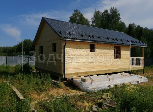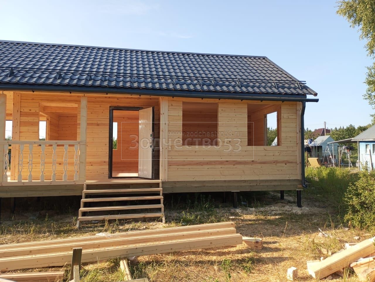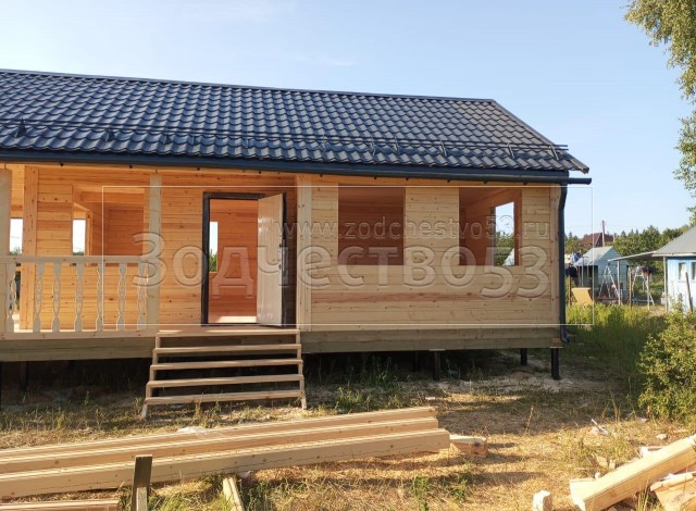 Постройка одноэтажного дома с открытой террасой общими размерами 11.0х6.0 (4.0х6.0 и 4.0х5.0 Дом буквой Г ) из профилированного бруса 140х140 Камерной сушки (прямой) и ( 3.0х6.0 и 4.0х1.0 Открытая терраса буквой Г ) под общей двухскатной крышей .