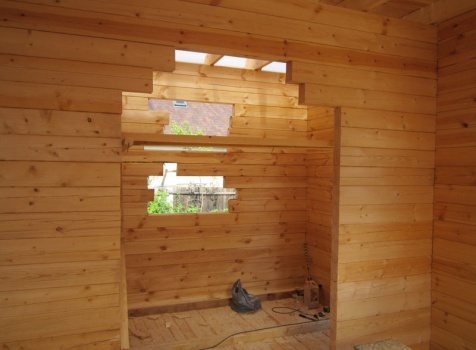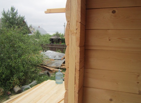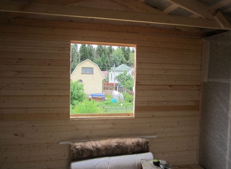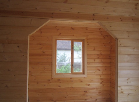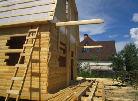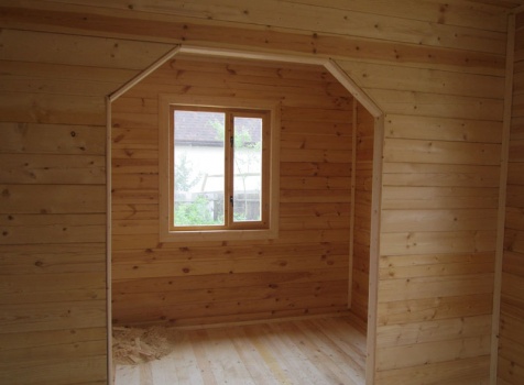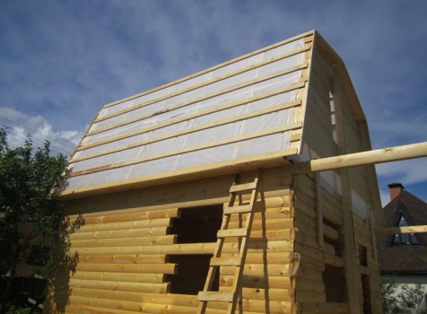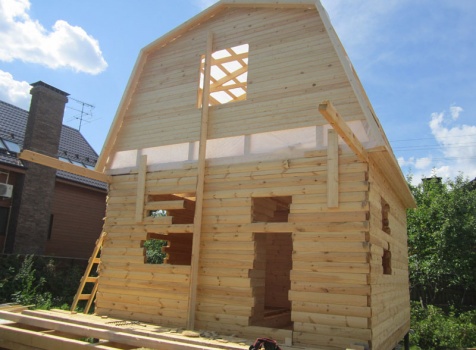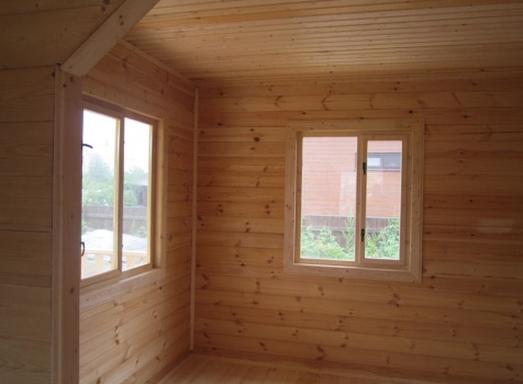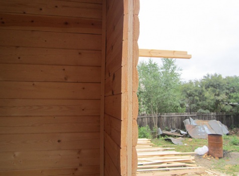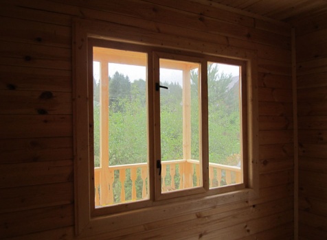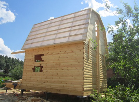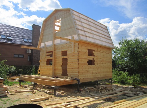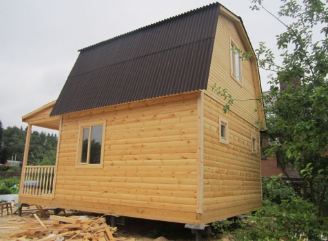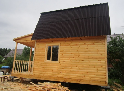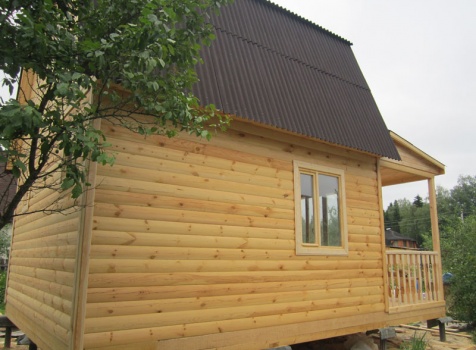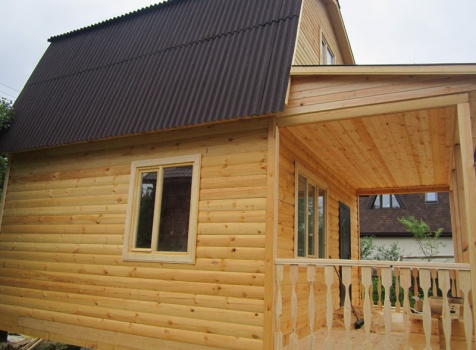 Дом 5×7 м. из профилированного бруса 100×150 (5×5 м. под ломанной крышей и открытая веранда 2×5 м.). Построен в Московской области, Солнечногорском районе, д. Маслово