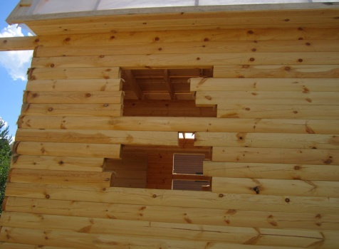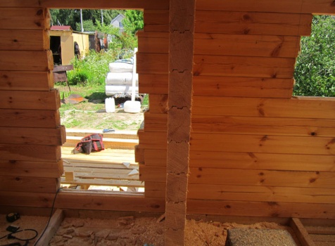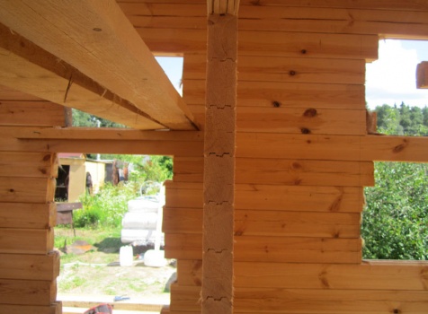 Стены из профилированного бруса 100×150, 19 венцов на нагеля, в тёплый угол (высота 2,60м).