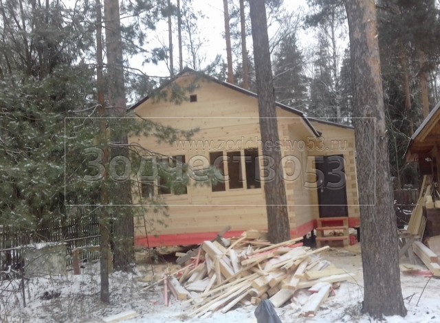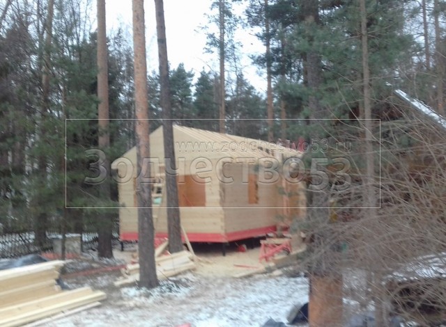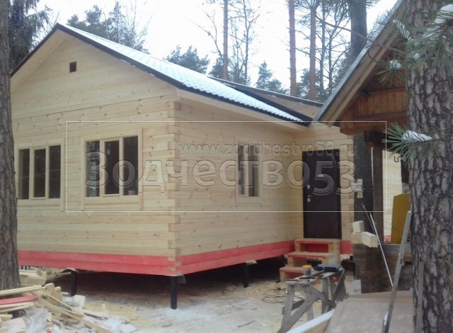 Дом общими размерами 6.50*9.0 (6.50*4.0 и 5.0*5.0 буквой Г под двухскатной крышей из профилированного бруса 150*150. Объект построен: г. Всеволожск, Торговый проспект, д.143