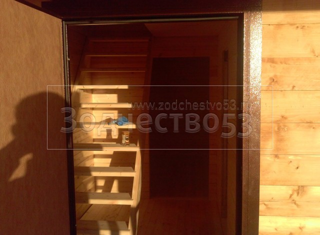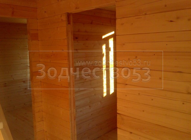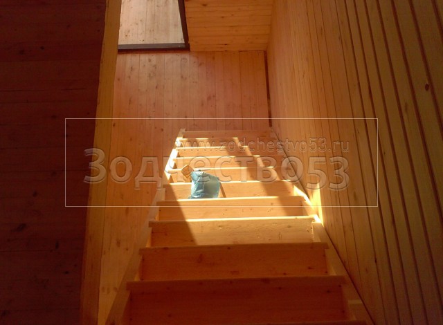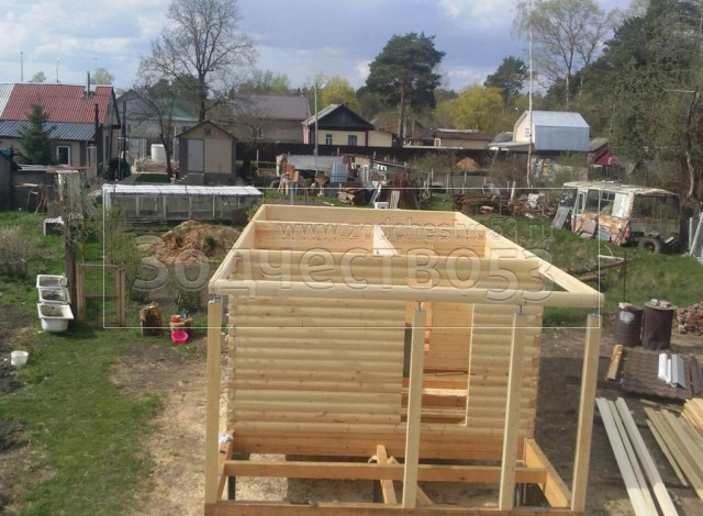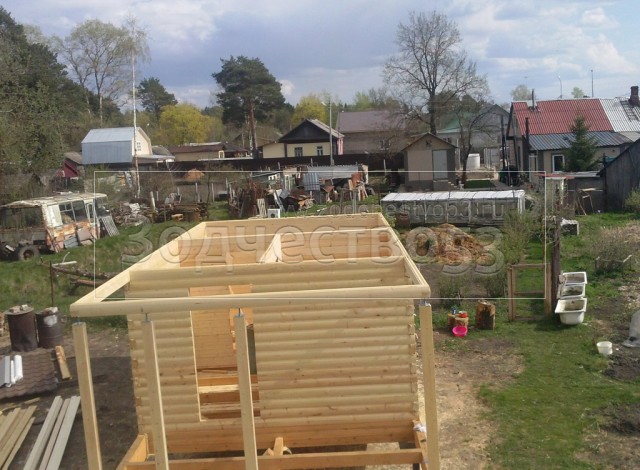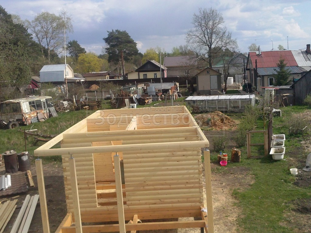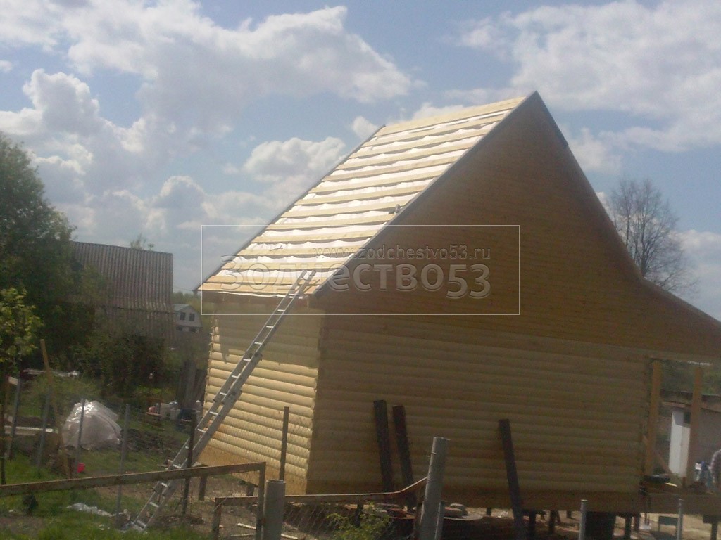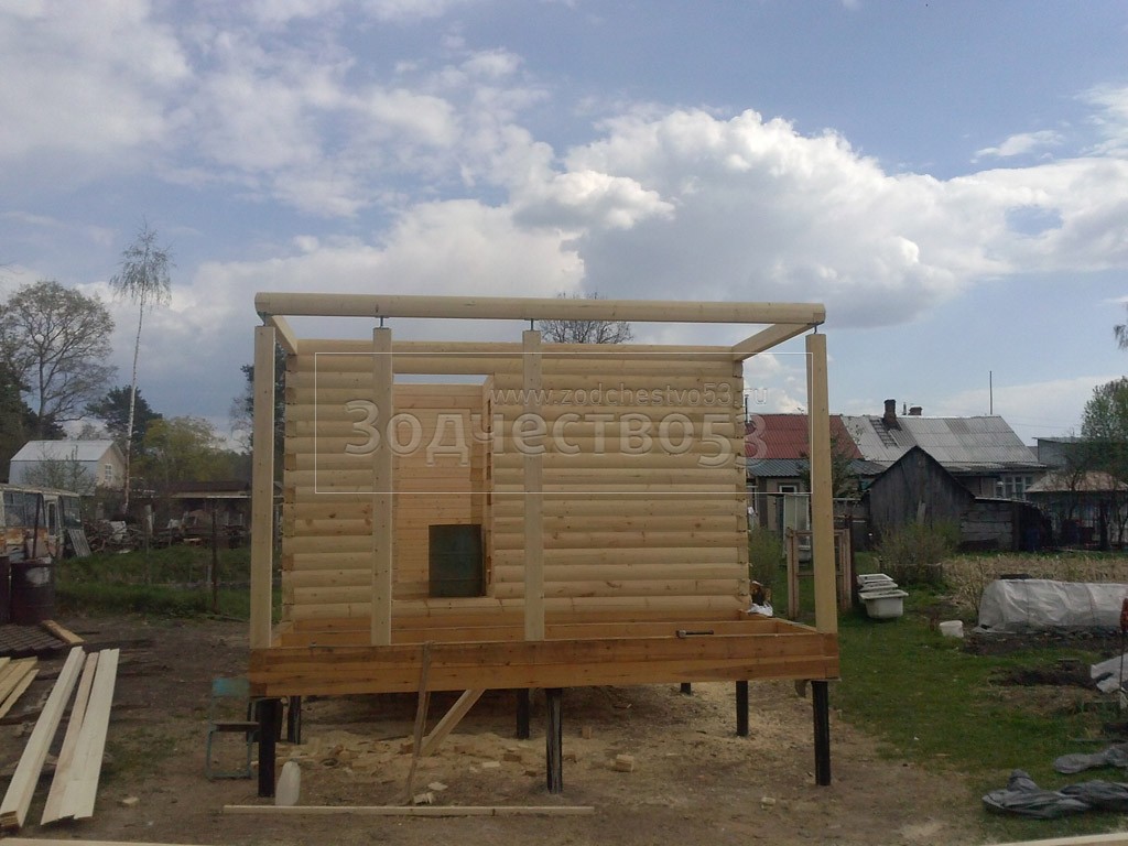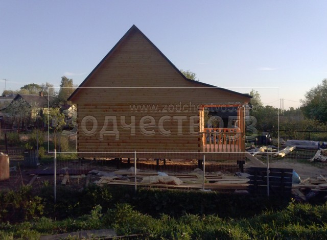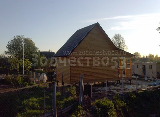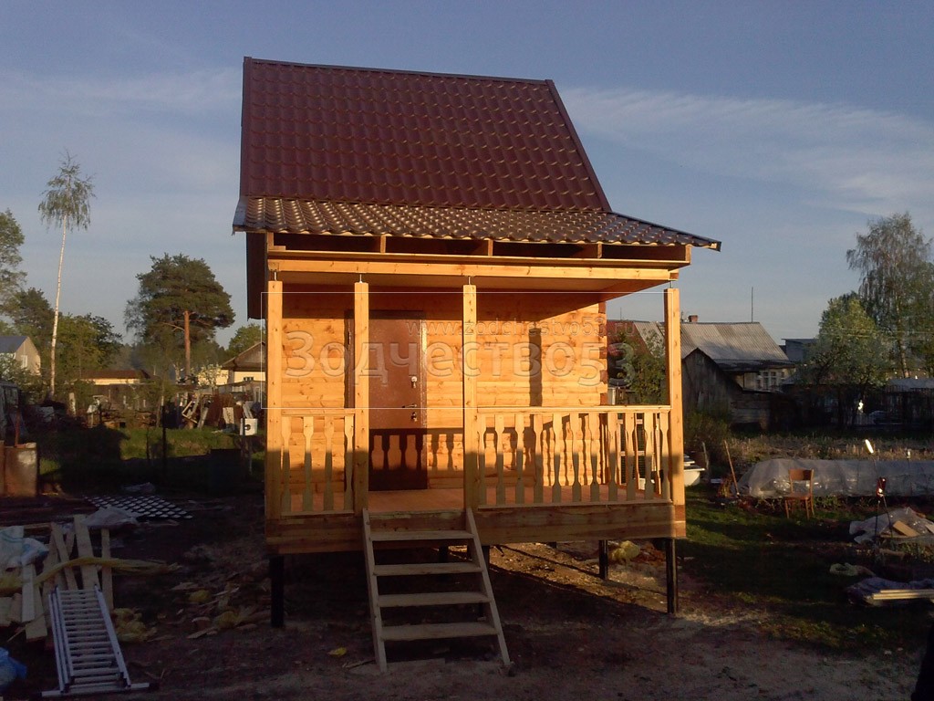 Двухэтажный дом 6,0х4,0 из профилированного бруса 100х150 под двухскатной крышей и терраса 2,0х4,0 открытая под отдельной односкатной крышей. Место строительства: Московская обл., Дмитровский р-н