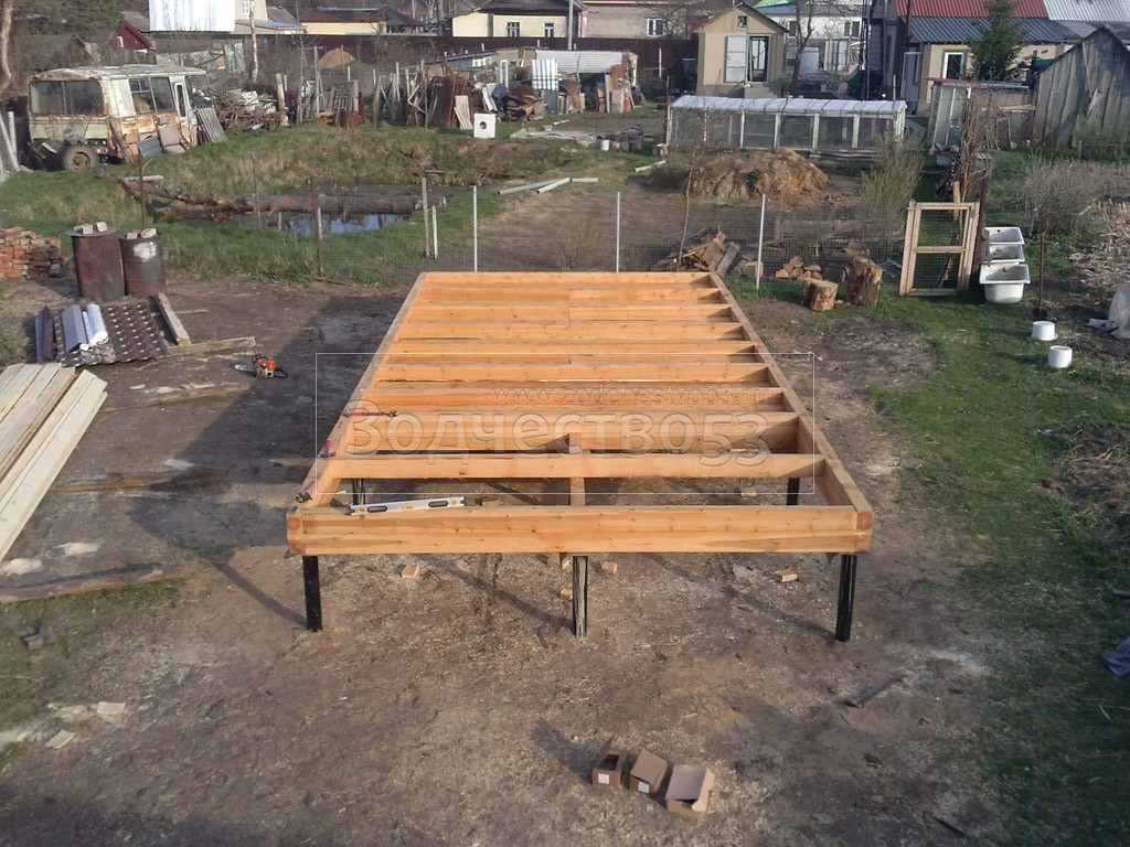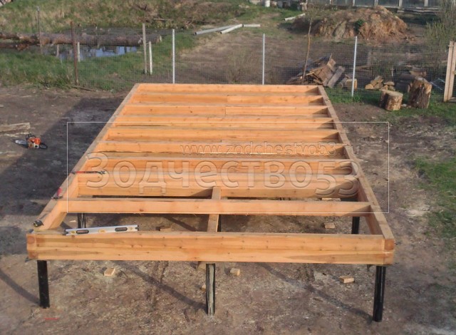 - на террасе установлены строганые столбы 100х100 с усадочными болтами
