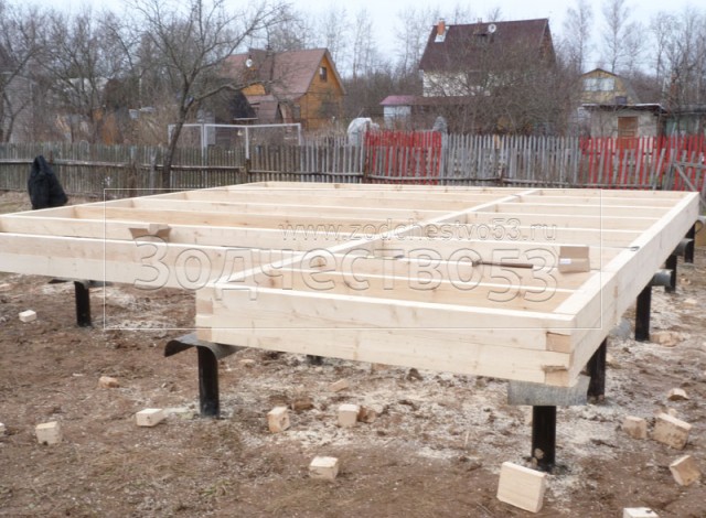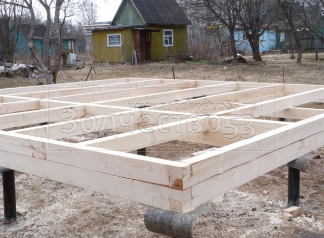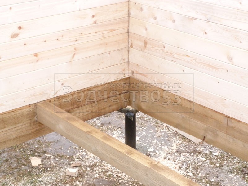 - Обработка огнебиозащитой черновых полов лаг и нижнего венца