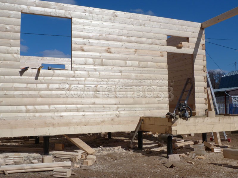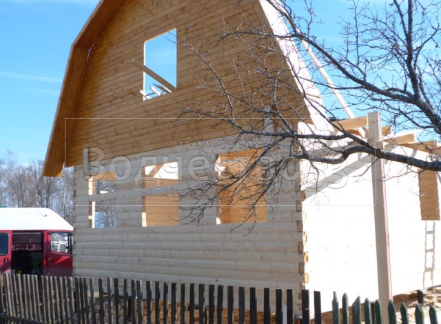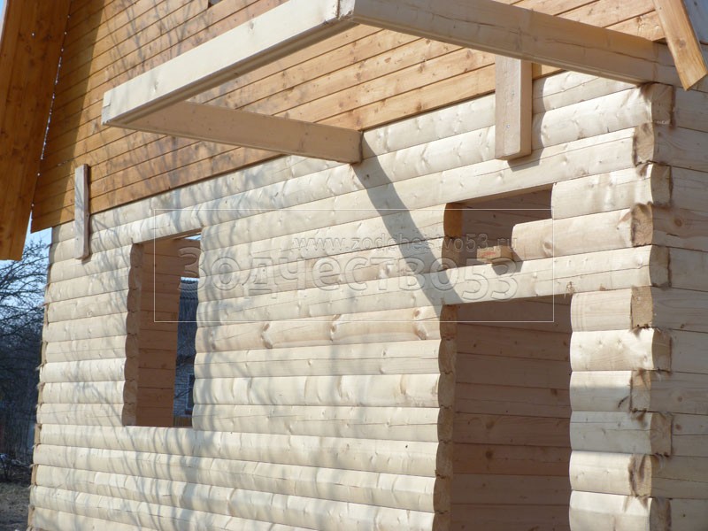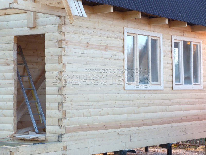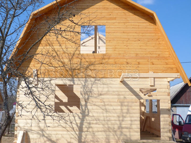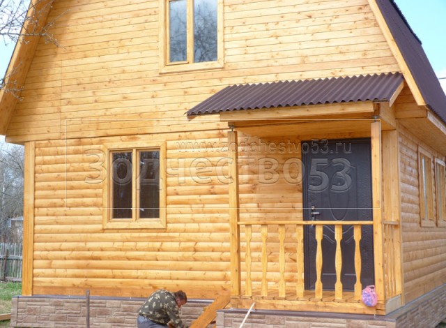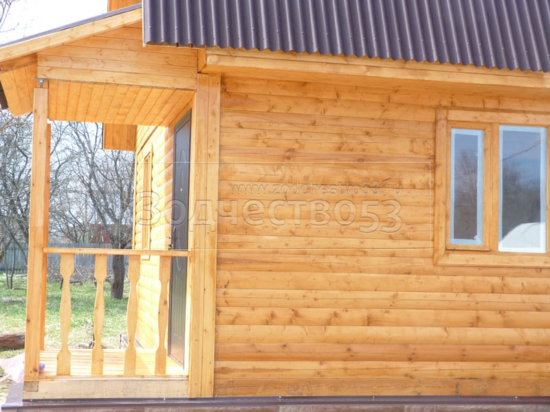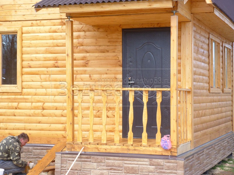 Дом 6×6 из профилированного бруса 100×150 и открытым крыльцом 1,2×2 с плоскими резными балясинами.Построен в Калужской области, г. Малоярославец