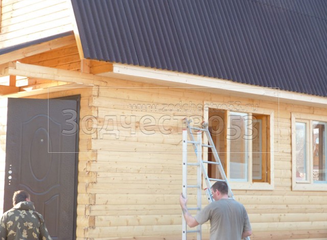 - Покраска дома с наружи и установка цокольных панелей (заказчик договаривался с бригадой)