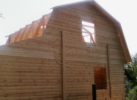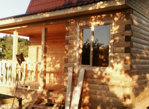 Дом 6,0×6,0 из профилированного бруса 150×150 под ломаной крышей и верандой 2,0×6,0 под отдельной односкатной крышей. Построен в г. Пенза, Первомайский р-н