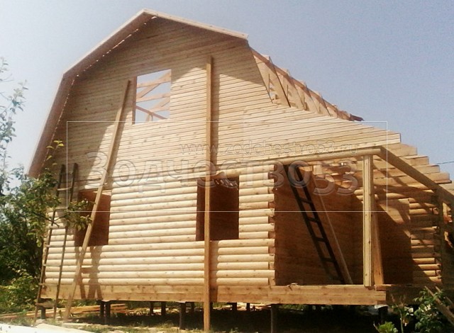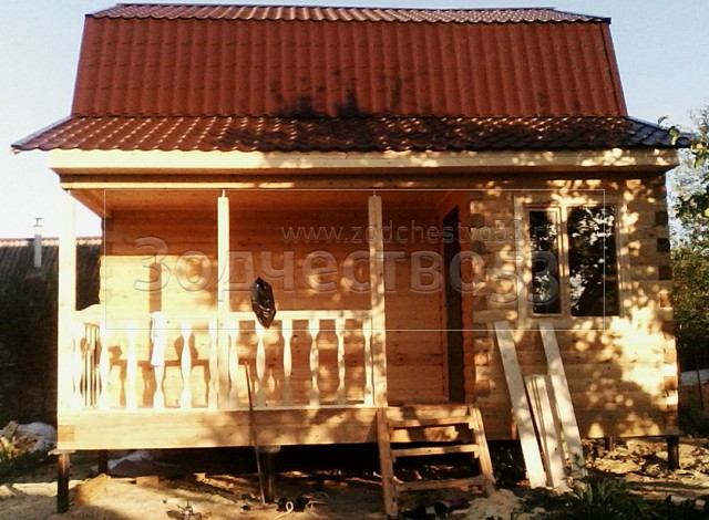 Дом 6,0×6,0 из профилированного бруса 150×150 под ломаной крышей и верандой 2,0×6,0 под отдельной односкатной крышей. Построен в г. Пенза, Первомайский р-н