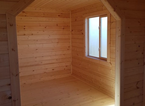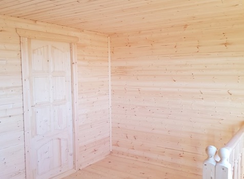 Второй этаж: размерами 4.5*6.0 каркасно-щитовой ,стены и потолок обшиты вагонкой класс В 16мм с утеплением в 100мм Изовер и с проложкой парогидроизоляции класс В