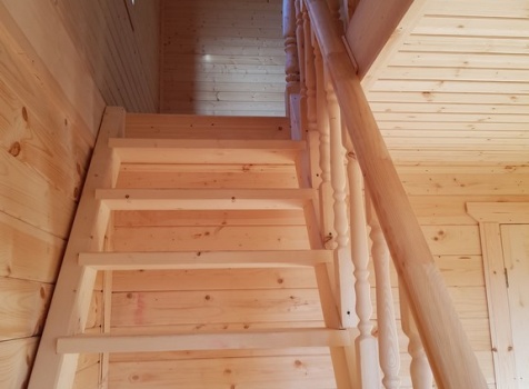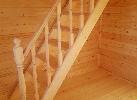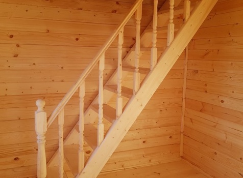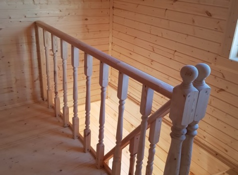 Лестница : одномаршевая с точеными балясинами ,стартовыми столбами и перилами