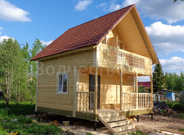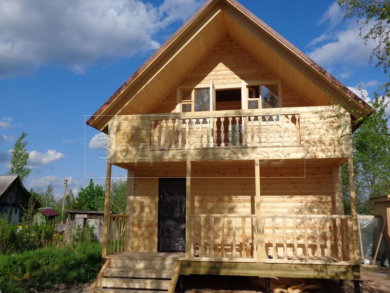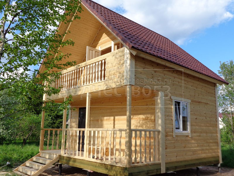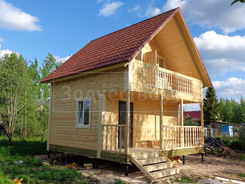 Дом 6×6 из профилированного бруса 150×150 с полуторным этажём под двухскатной крышей (металочерепица) — металочерепица заказчика. Построен в мае 2014 года в Ленинградской области в Тосненском районе,Бабино-2