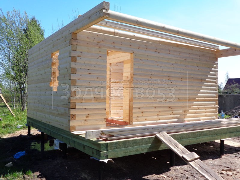 - Монтаж полуторного этажа на 7 венцов из бруса 150×150.