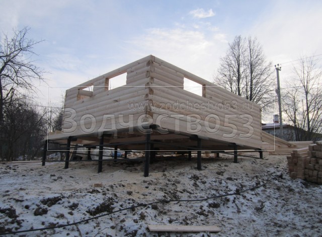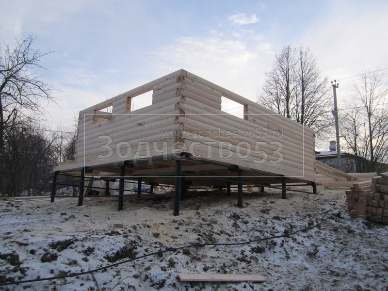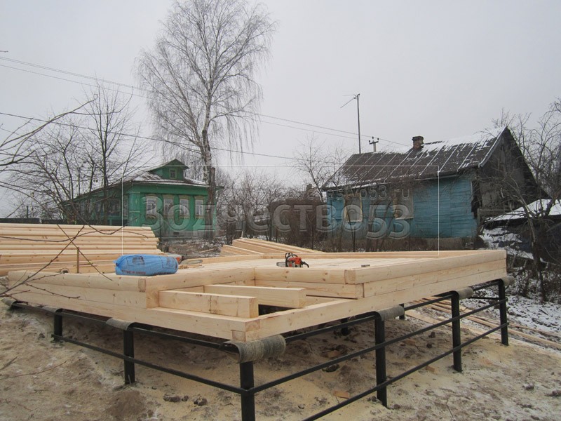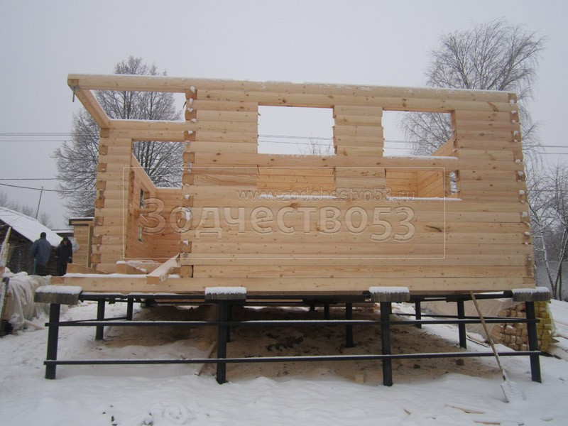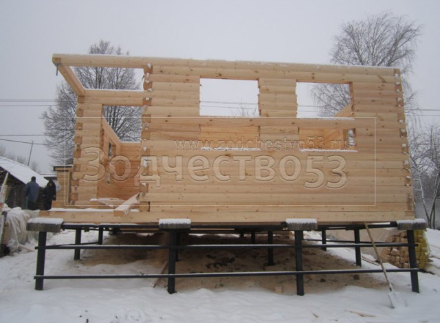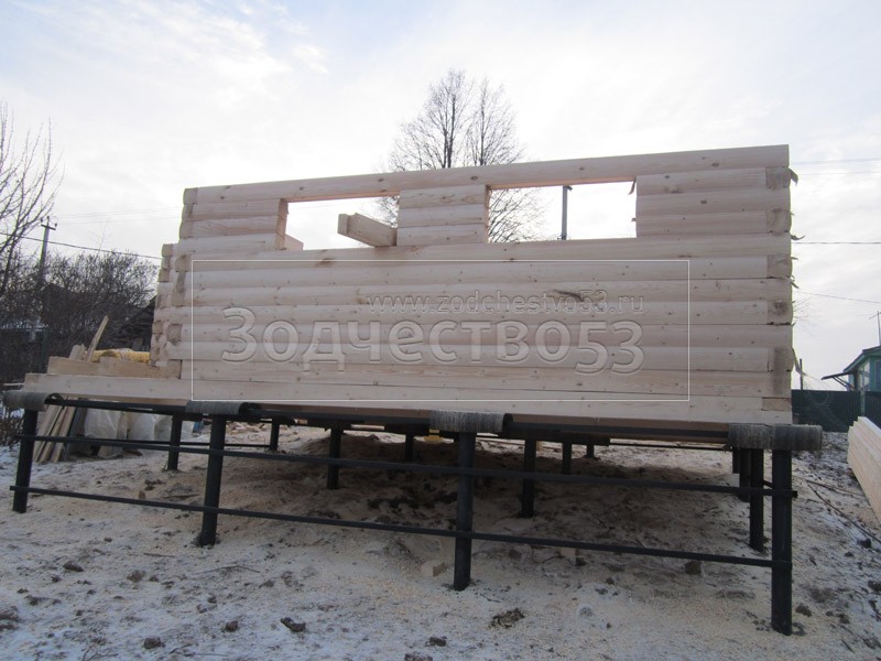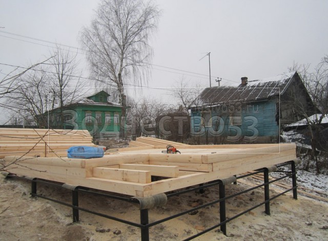 - Фундамент — свайно-винтовой, 16 свай + двойная обвязка из проф. трубы