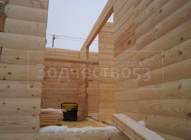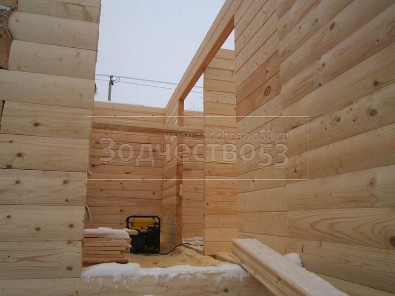 - Перегородки из профилированного бруса 100×150, сборка на нагеля в тёплый угол (тёплый угол в подарок!).