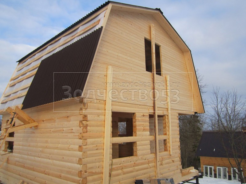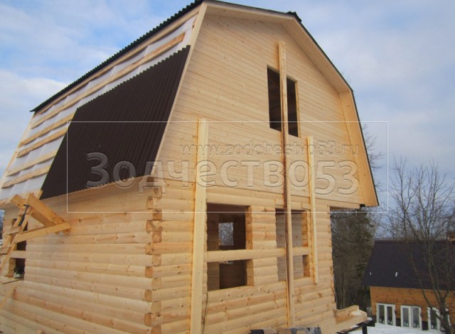 - Стены дома из профилированного бруса 150×150 (овал) — 17 венцов.