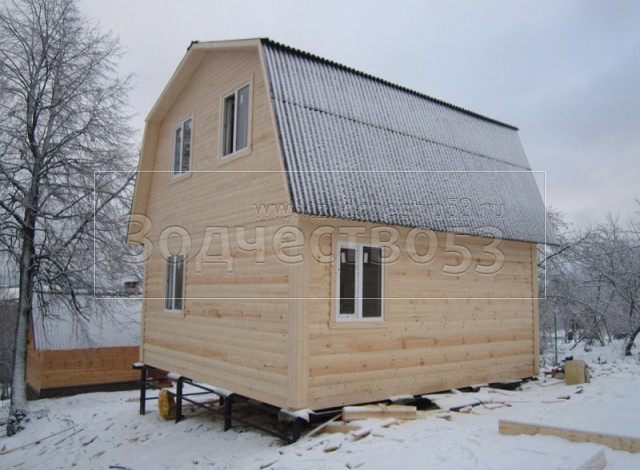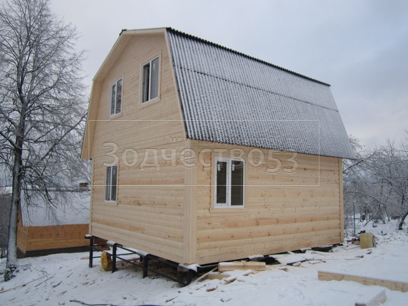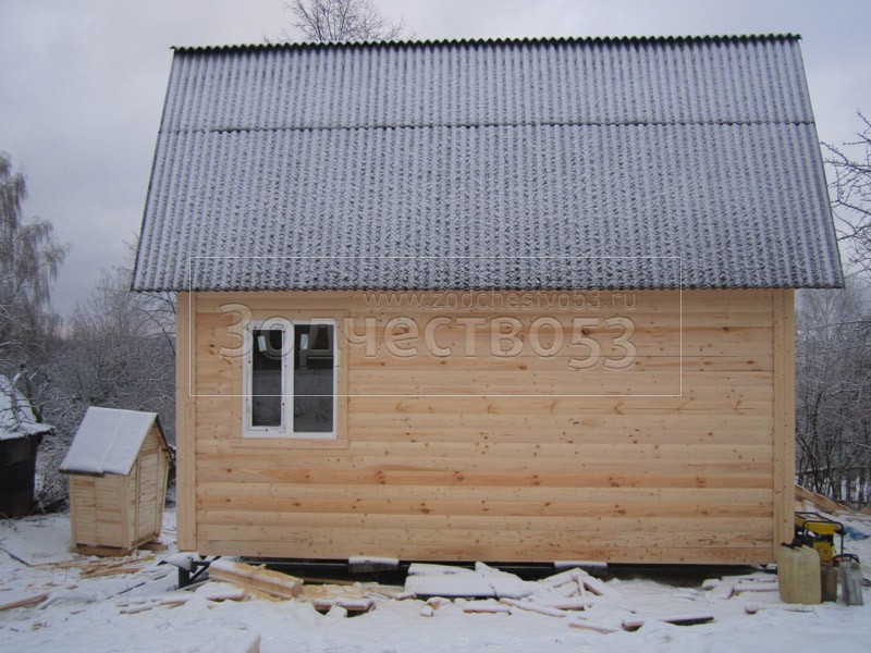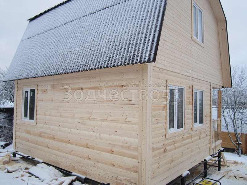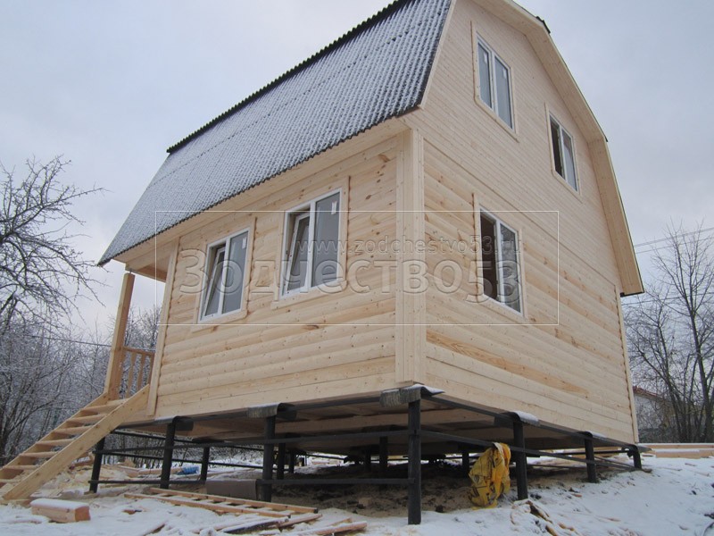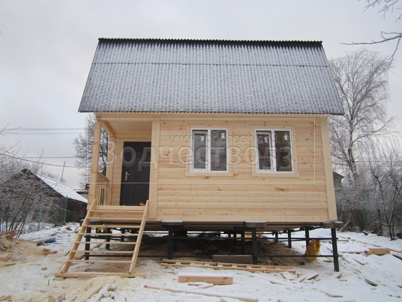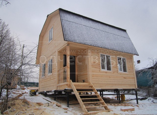 Дом 6×6 из профилированного бруса 150×150 с крыльцом 1.5×1.5 под общей ломанной крышей. Построен в Московской области, Сергиево -Посадском районе, в д. Опарино