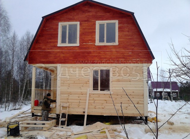 Дом 6.0×6.0 из профилированного бруса 150×150 под ломанной крышей. Построен: Ленинградская область, Кингисепский район.