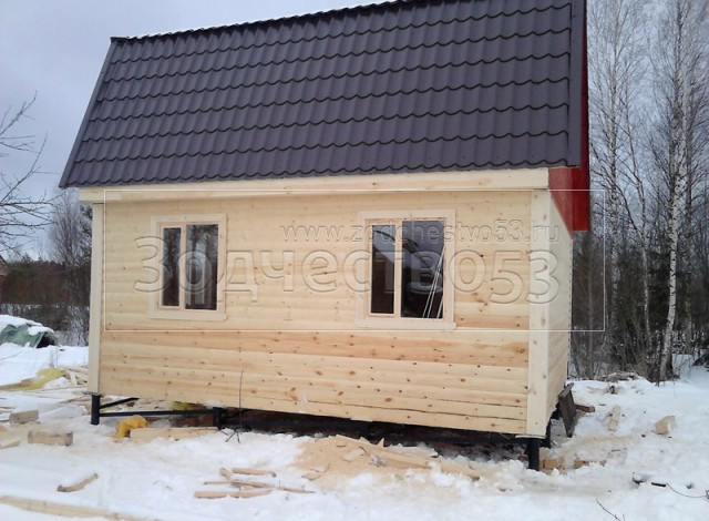 - Второй этаж: 4.5×6.0 по высоте 2.2м., каркасно-щитовой, обшивается вагонкой класса «В» 16мм с утеплением в 50мм.