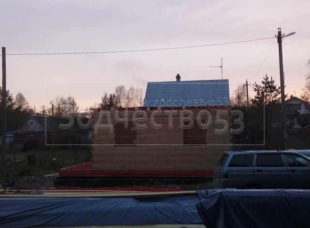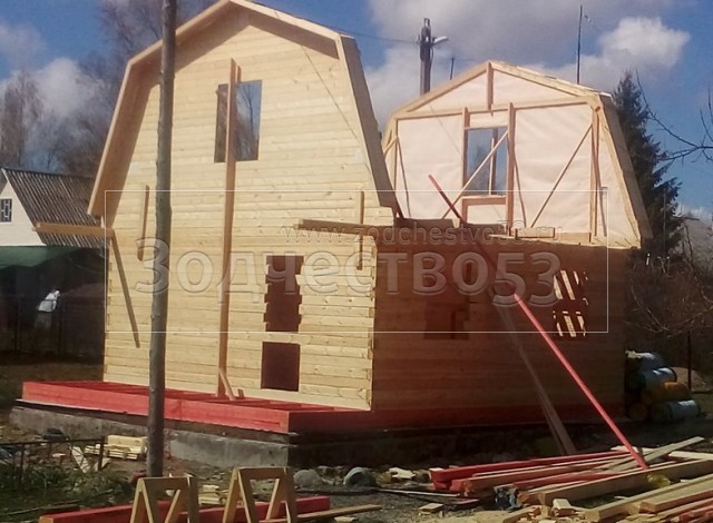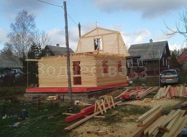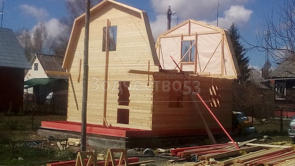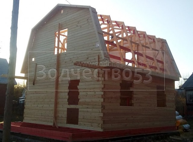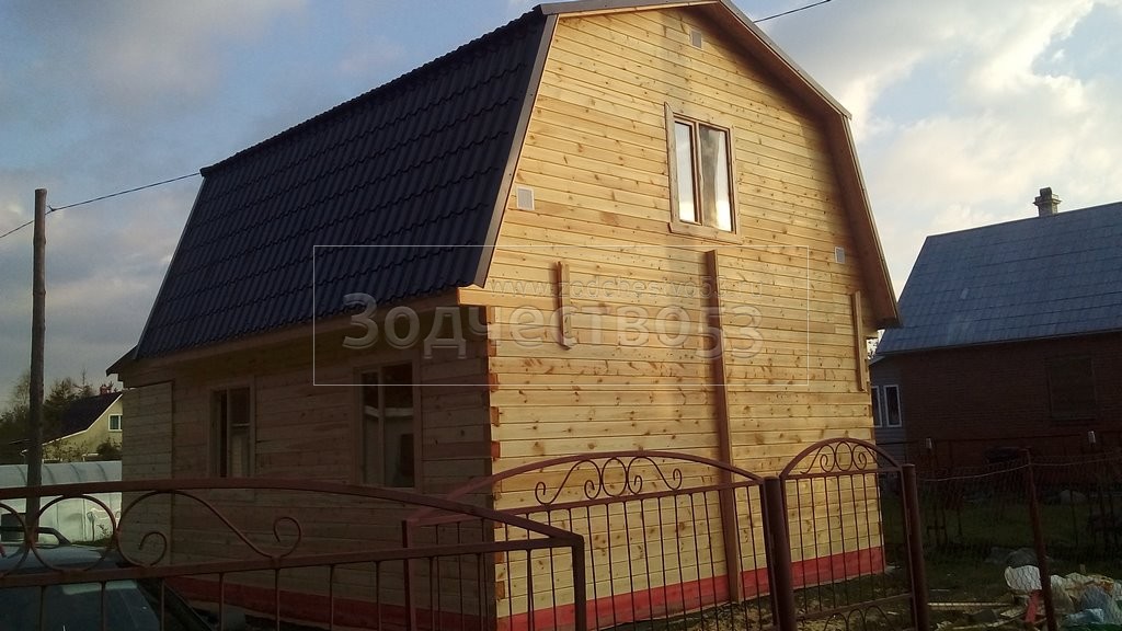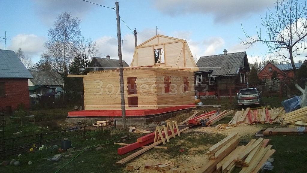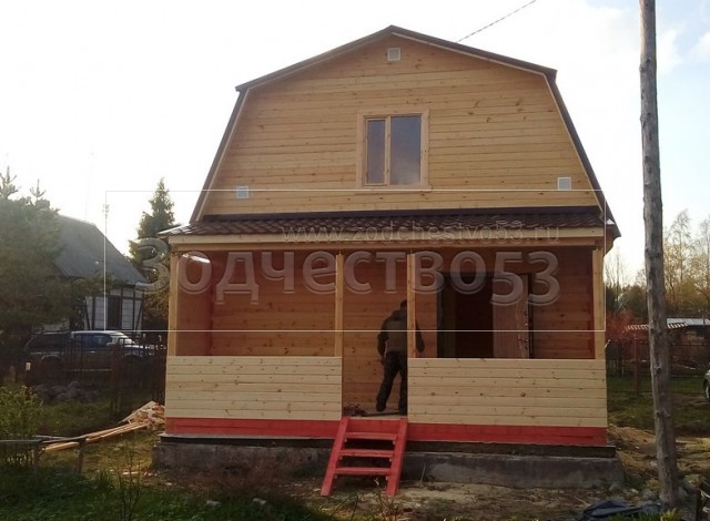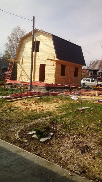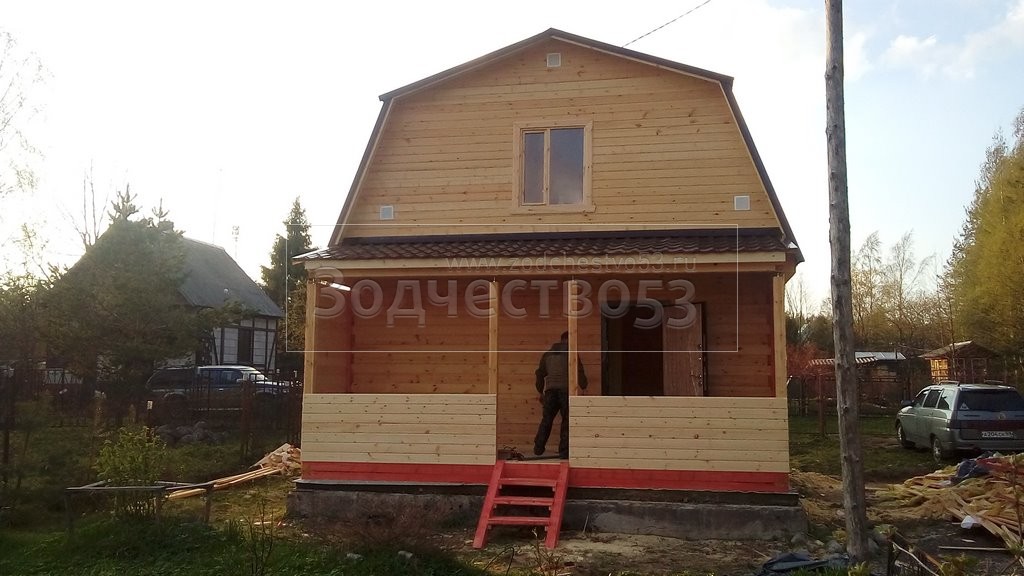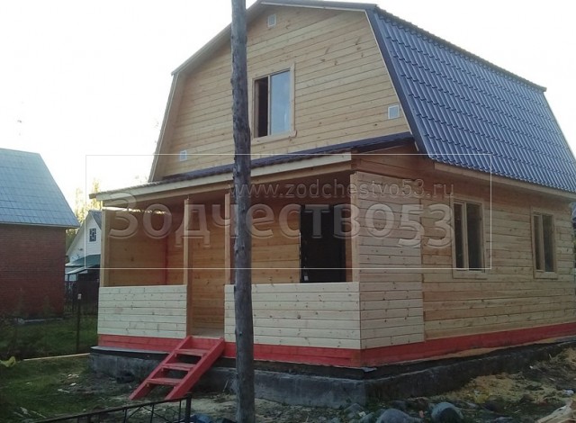 Дом общими размерами 6.0*7.50 (6.0*6.0 из профилированного бруса 150*100 под ломанной крышей и 1.50*6.0 под односкатной прямой крышей. Объект построен: Ленинградская обл., Выборгский р-он, станция Каннельярви, СНТ Домостроитель, уч.310.