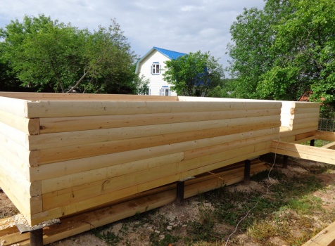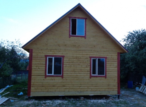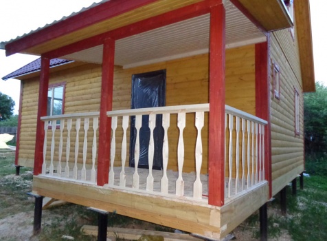 Дом 6×8 из профилированного бруса 100×150 и верандой 2×3 под отдельной крышей. Построен в Калужской области, Боровский район, СНТ Восход.