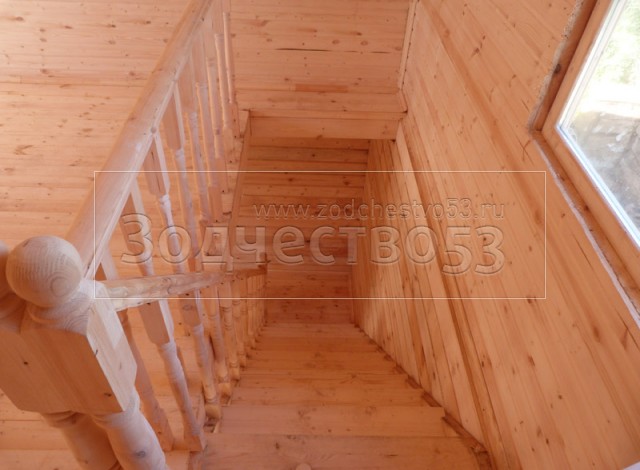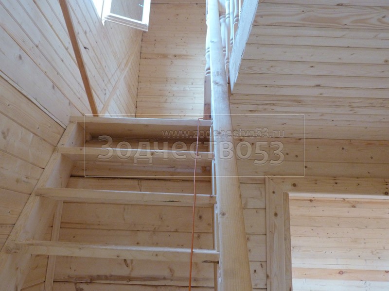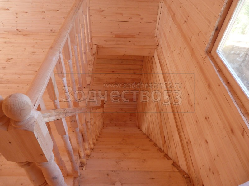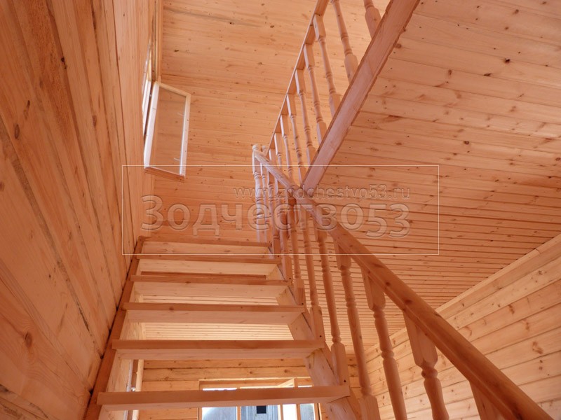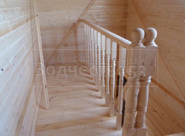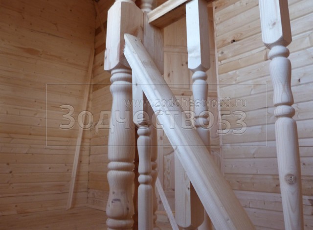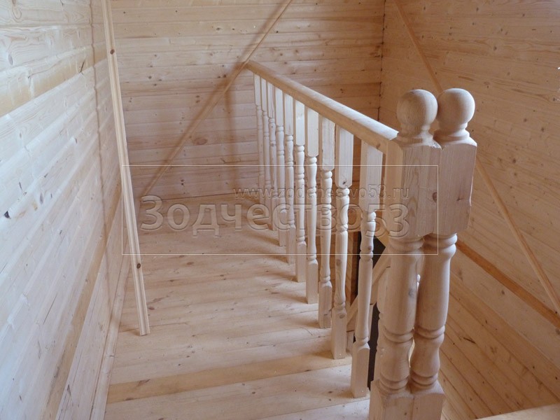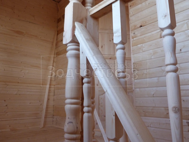 - Установка одномаршевой лестницы с точёными балясинами.