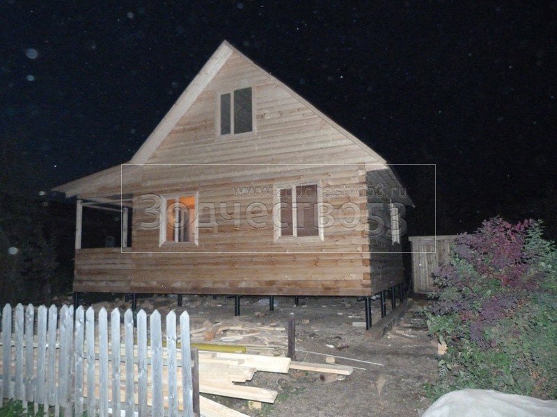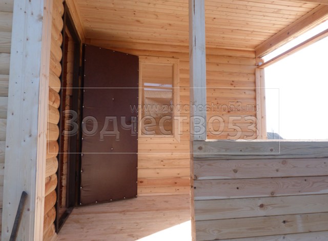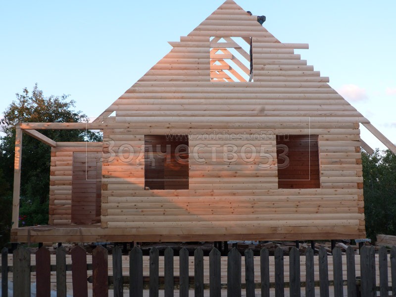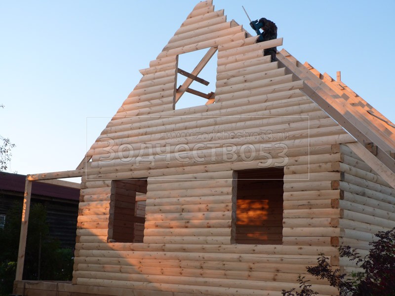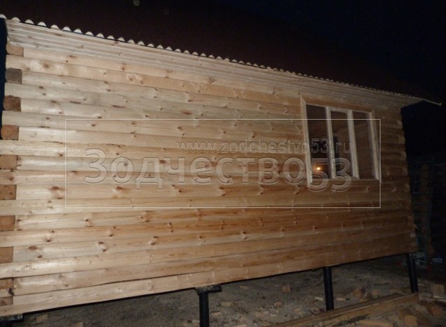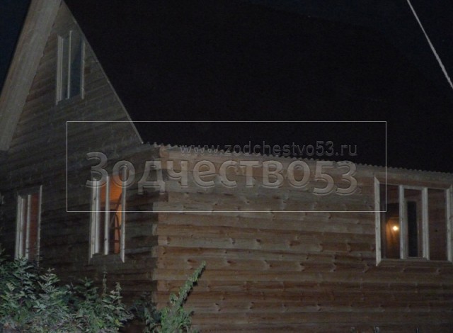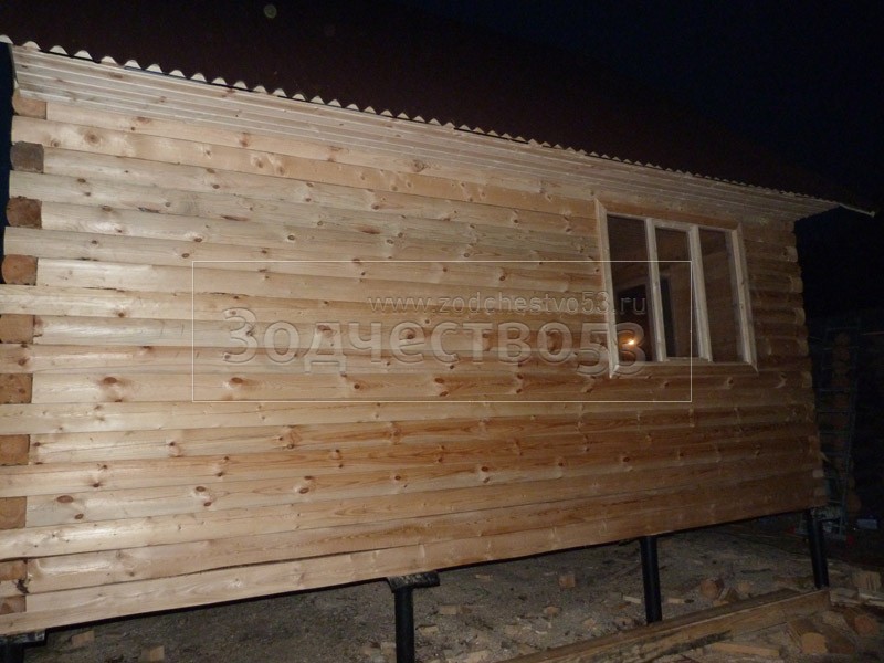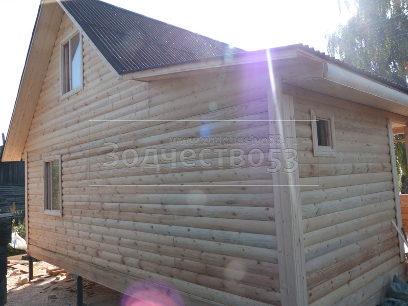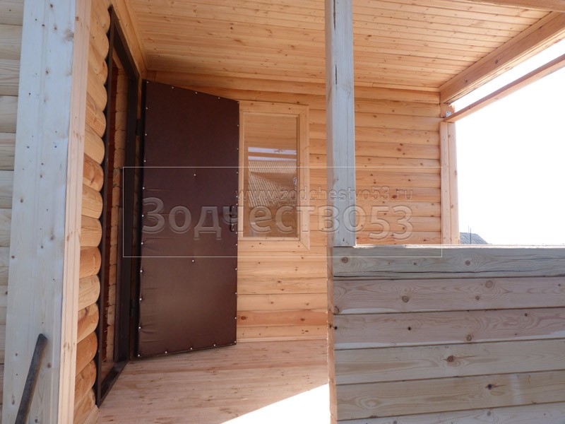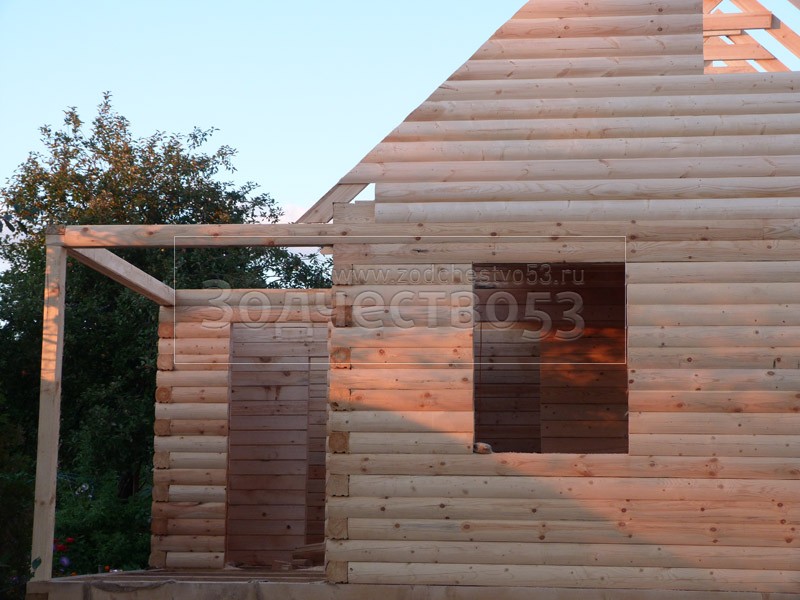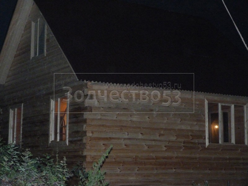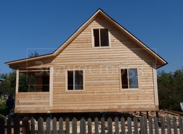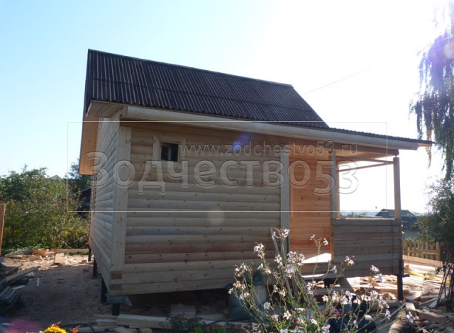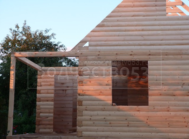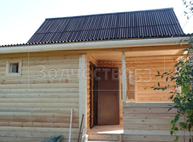 - Фронтон каркасно-щитовой, высотой 3.0 м., обшитый блок хаусом.