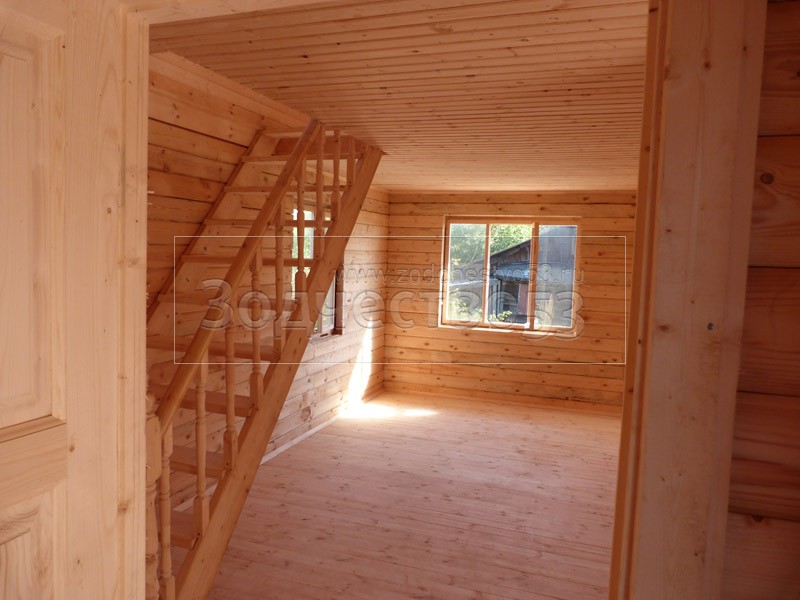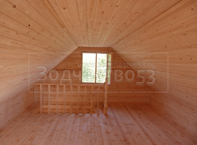- Мансардный этаж высотой 2.20 м., размерами 4.5×6, обшит вагонкой класса «В», с утеплением 100 мм., с проложкой парогидроизоляцией.