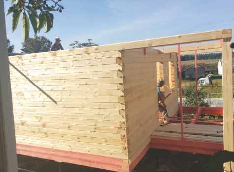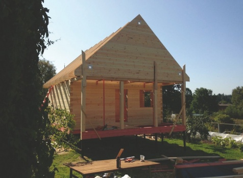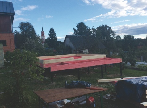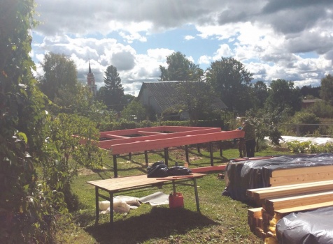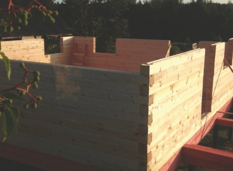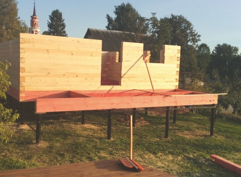 стены 18 рядов (высота 2,45-2,52), сборка на деревянные березовые нагеля